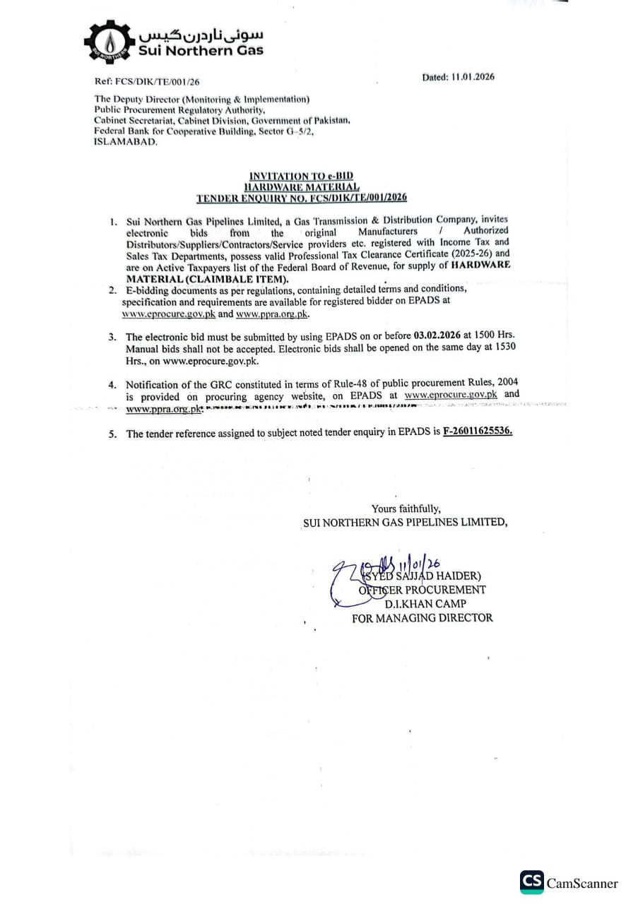 | FCS/DIK/TE/001/26 | 03, Feb 2026 03:00 PM |