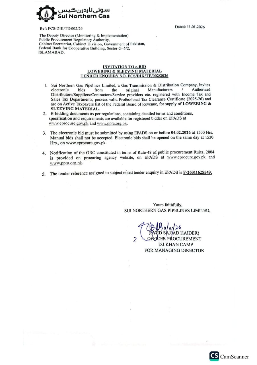 | FCS/DIK/TE/002/26 | 04, Feb 2026 03:00 PM |