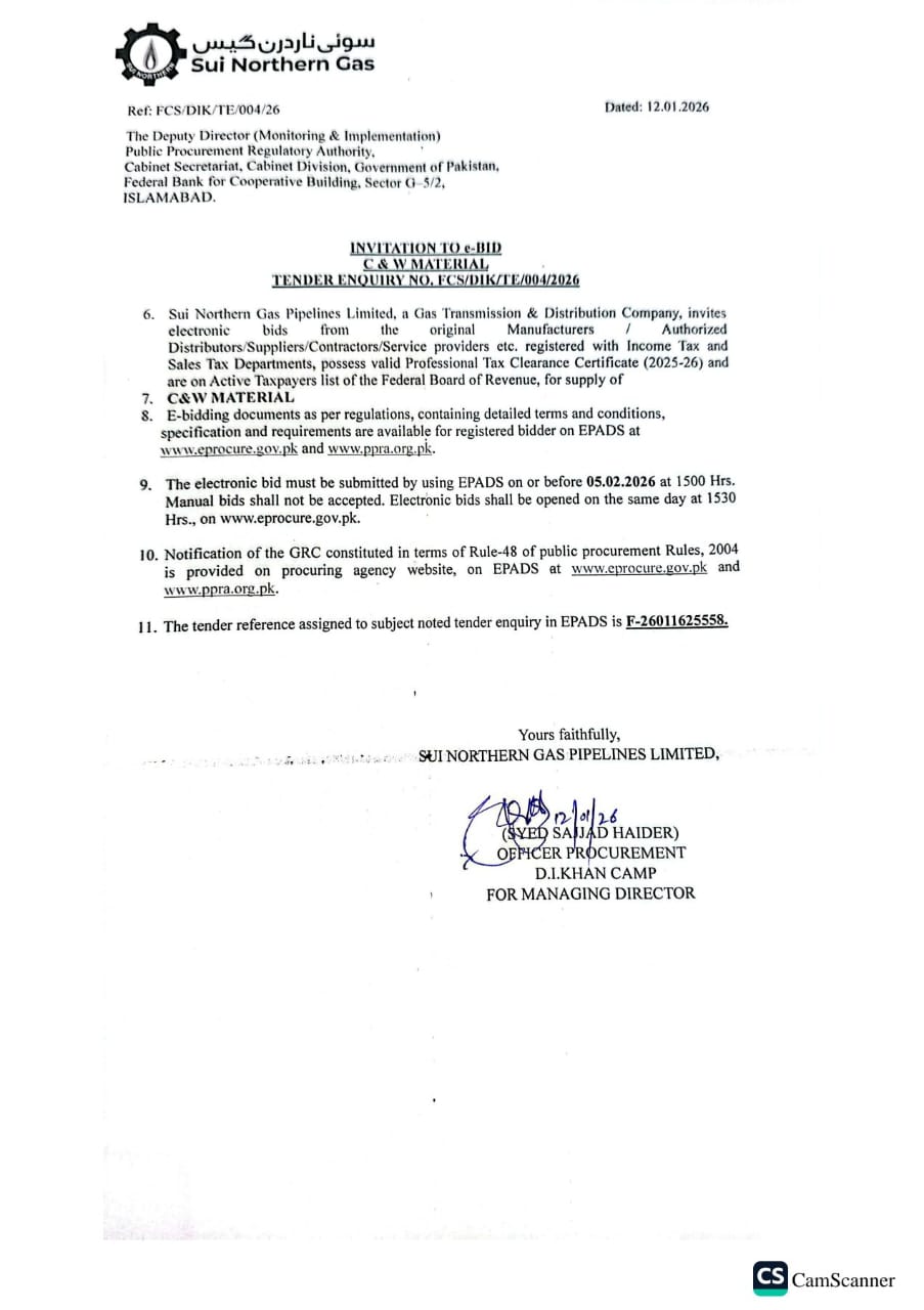 | FCS/DIK/TE/004/26 | 05, Feb 2026 03:00 PM |