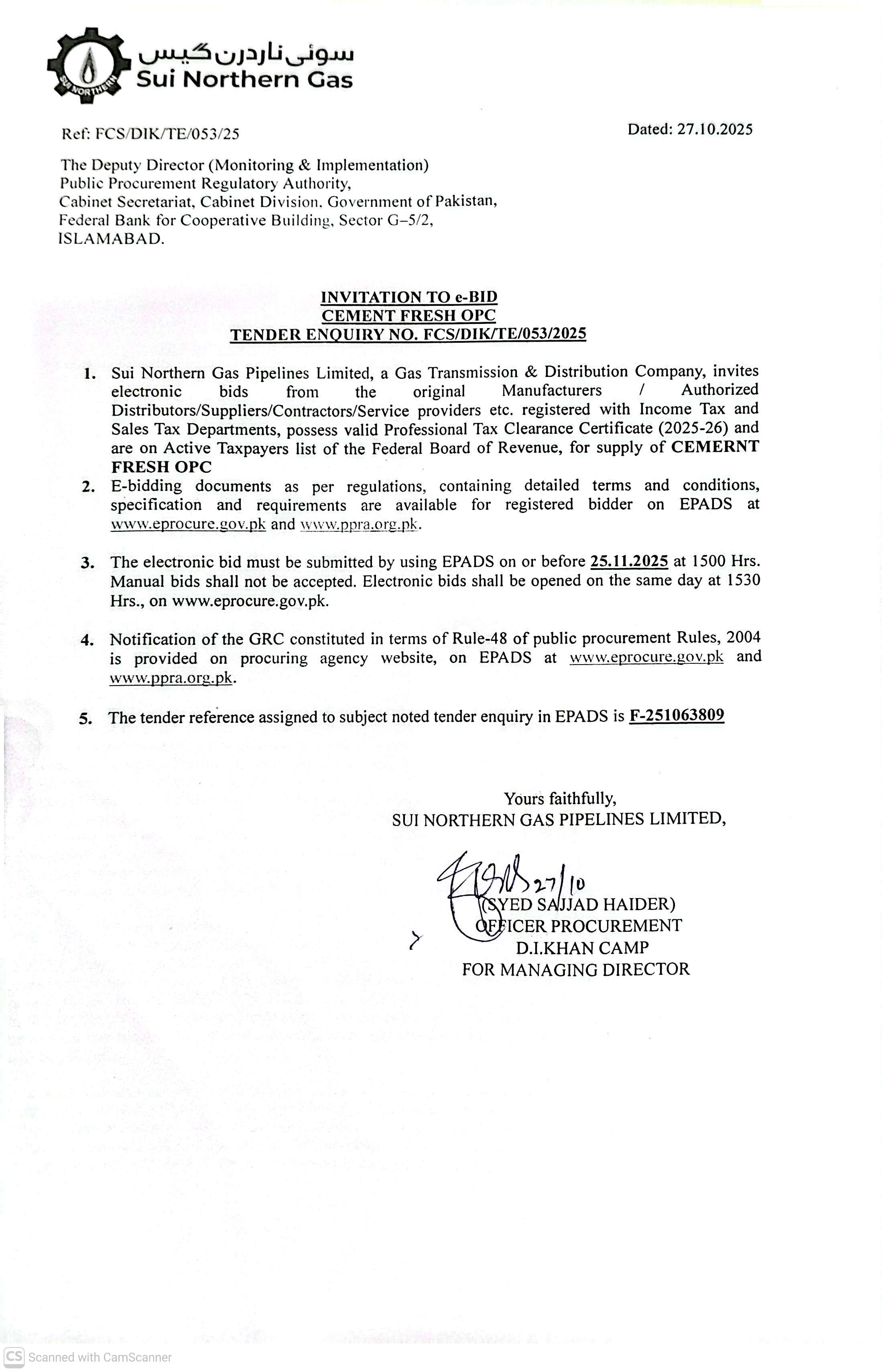 | FCS/DIK/TE/053/25 | 25, Nov 2025 03:00 PM |