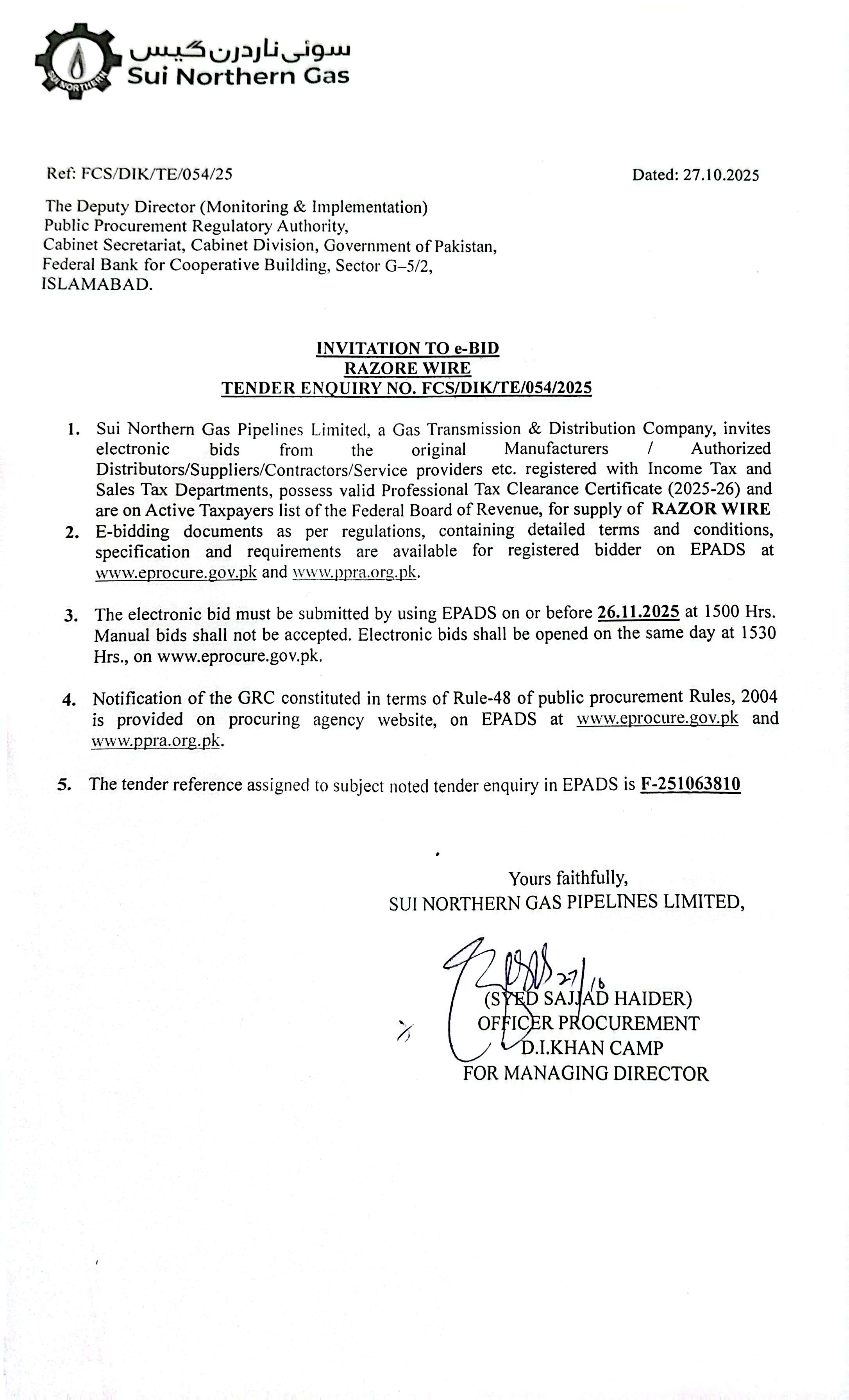 | FCS/DIK/TE/054/25 | 26, Nov 2025 03:00 PM |