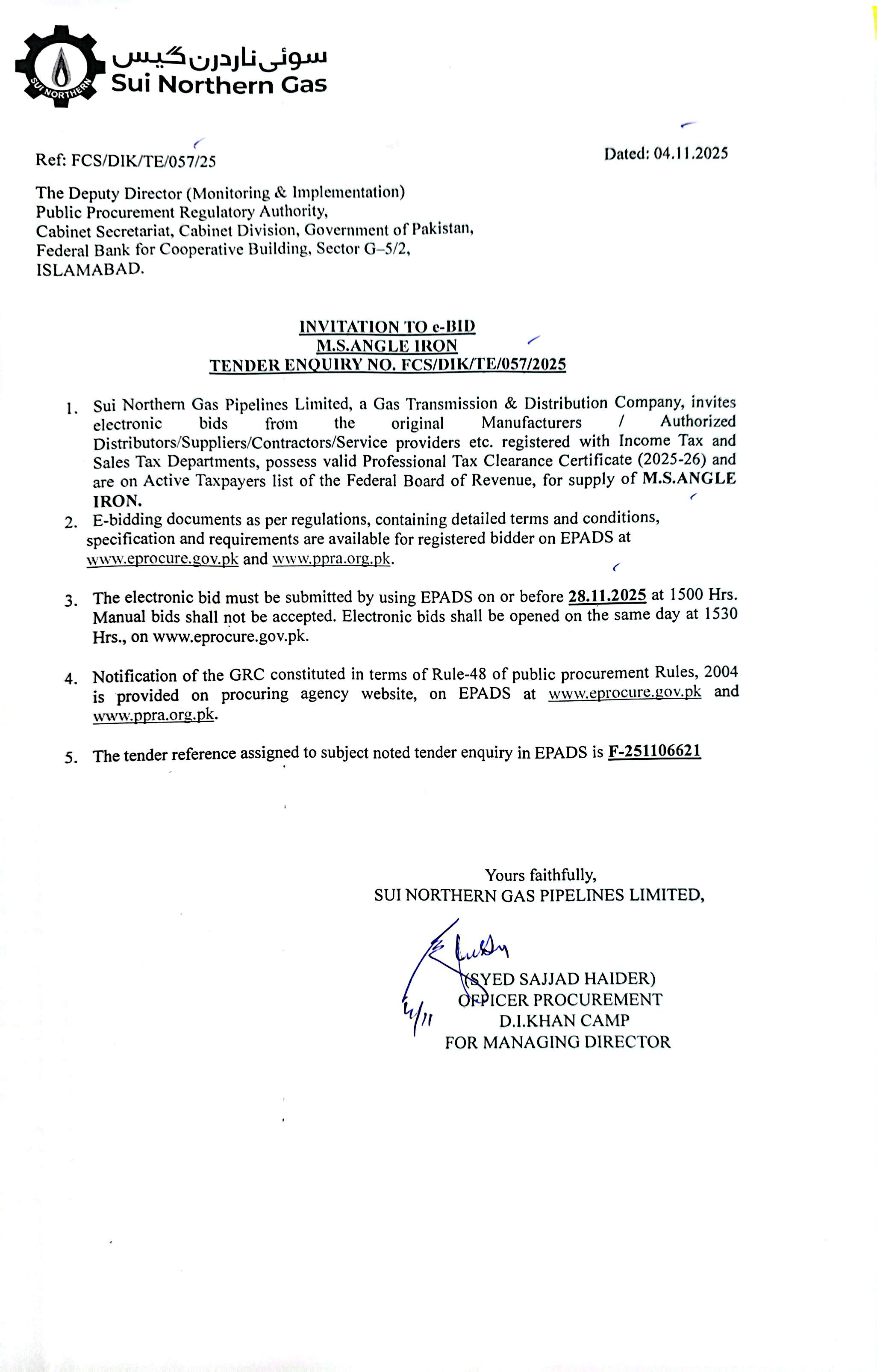 | FCS/DIK/TE/057/25 | 28, Nov 2025 03:00 PM |