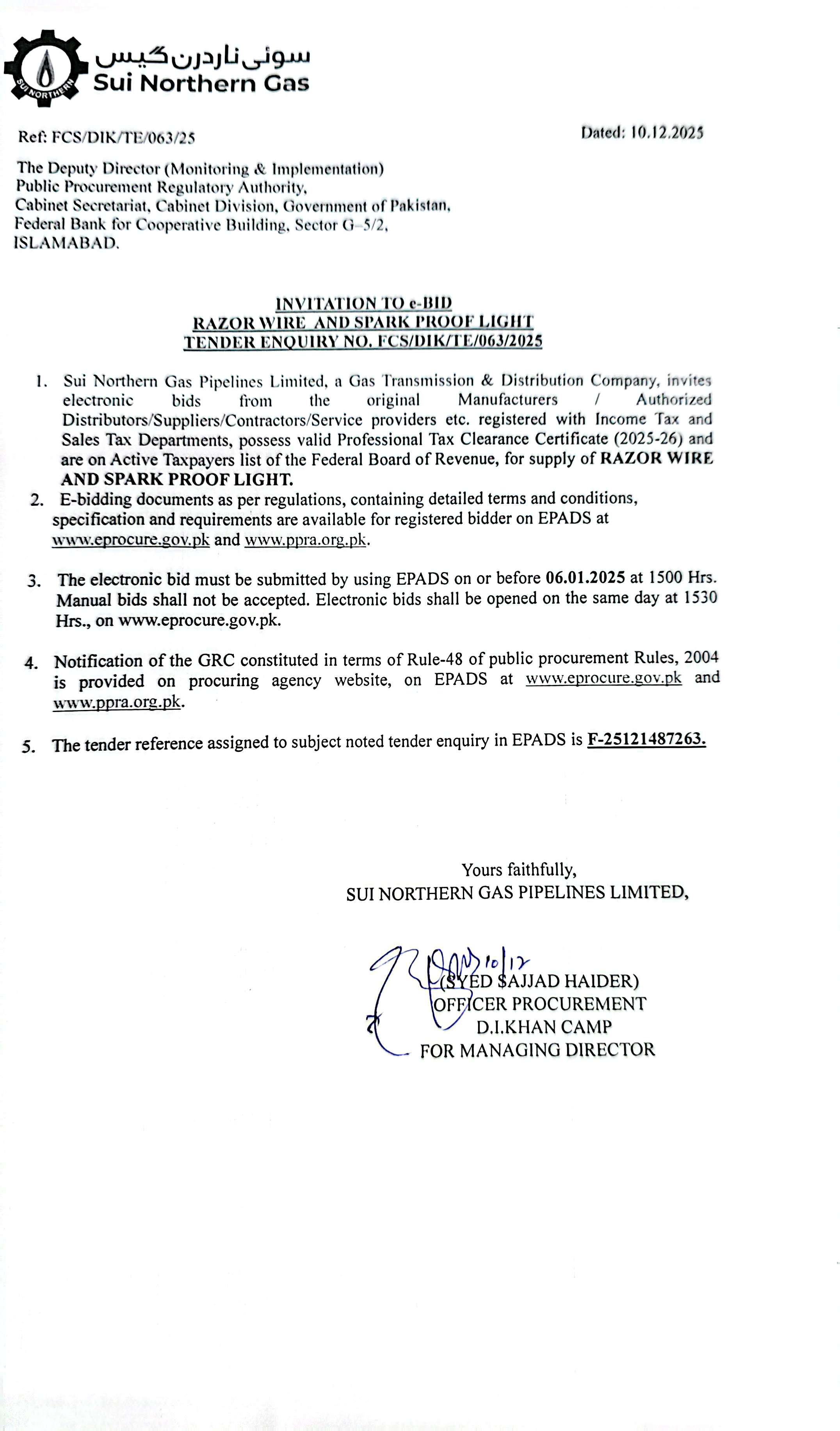| FCS/DIK/TE/063/25 | 06, Jan 2026 03:00 PM |