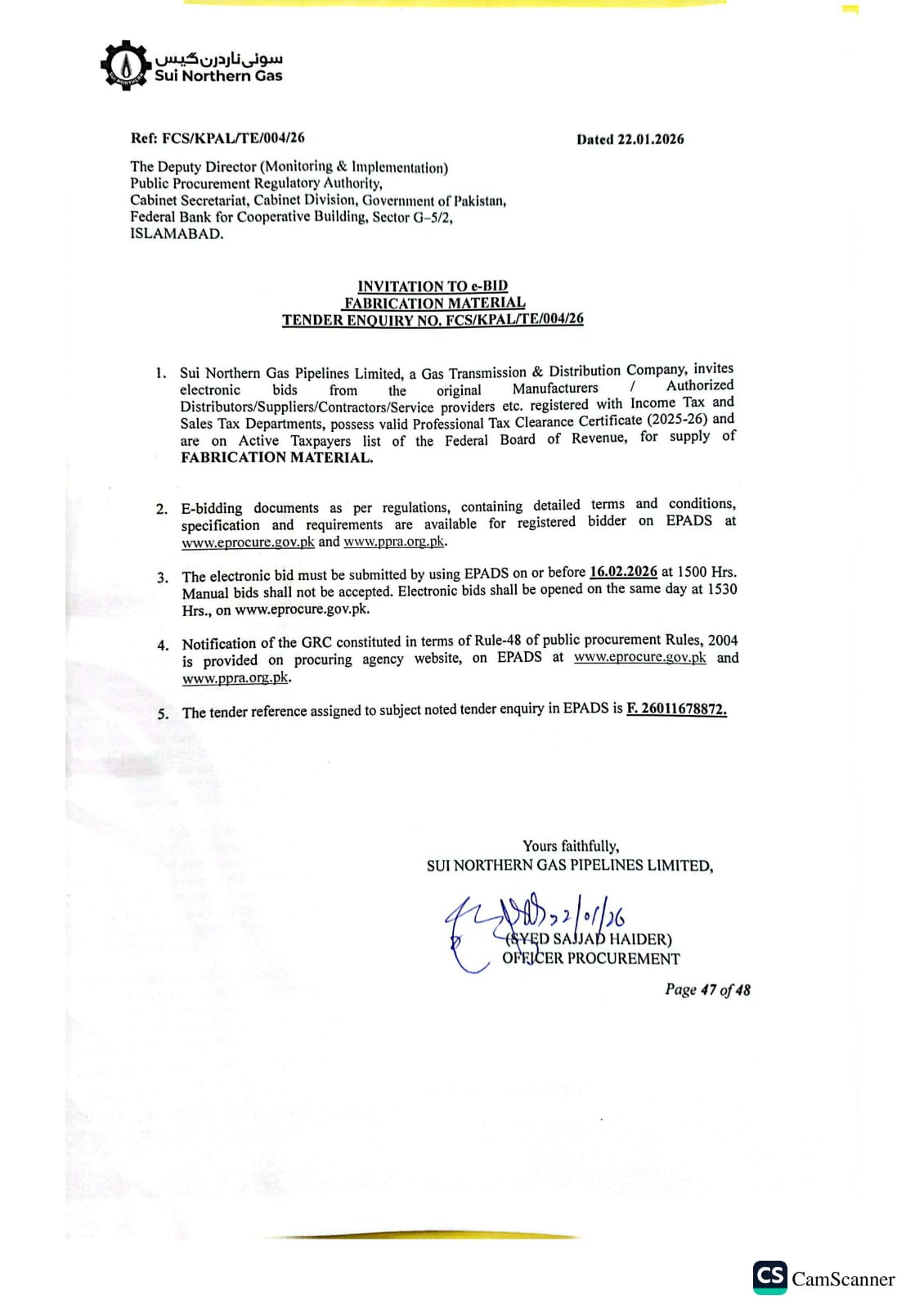 | FCS/KPAL/TE/004/26 | 16, Feb 2026 03:00 PM |