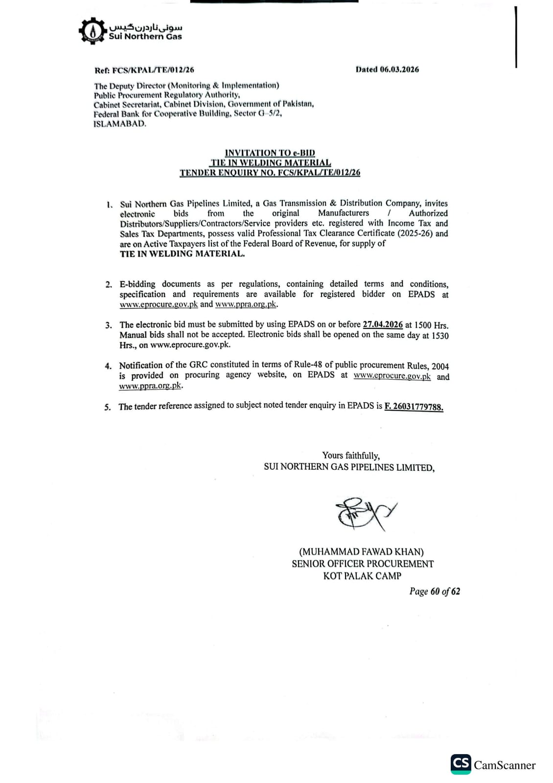 | FCS/KPAL/TE/012/26 | 27, Apr 2026 03:00 PM |