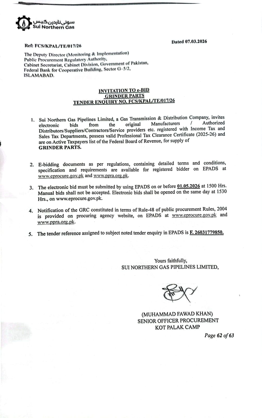 | FCS/KPAL/TE/017/26 | 01, May 2026 03:00 PM |