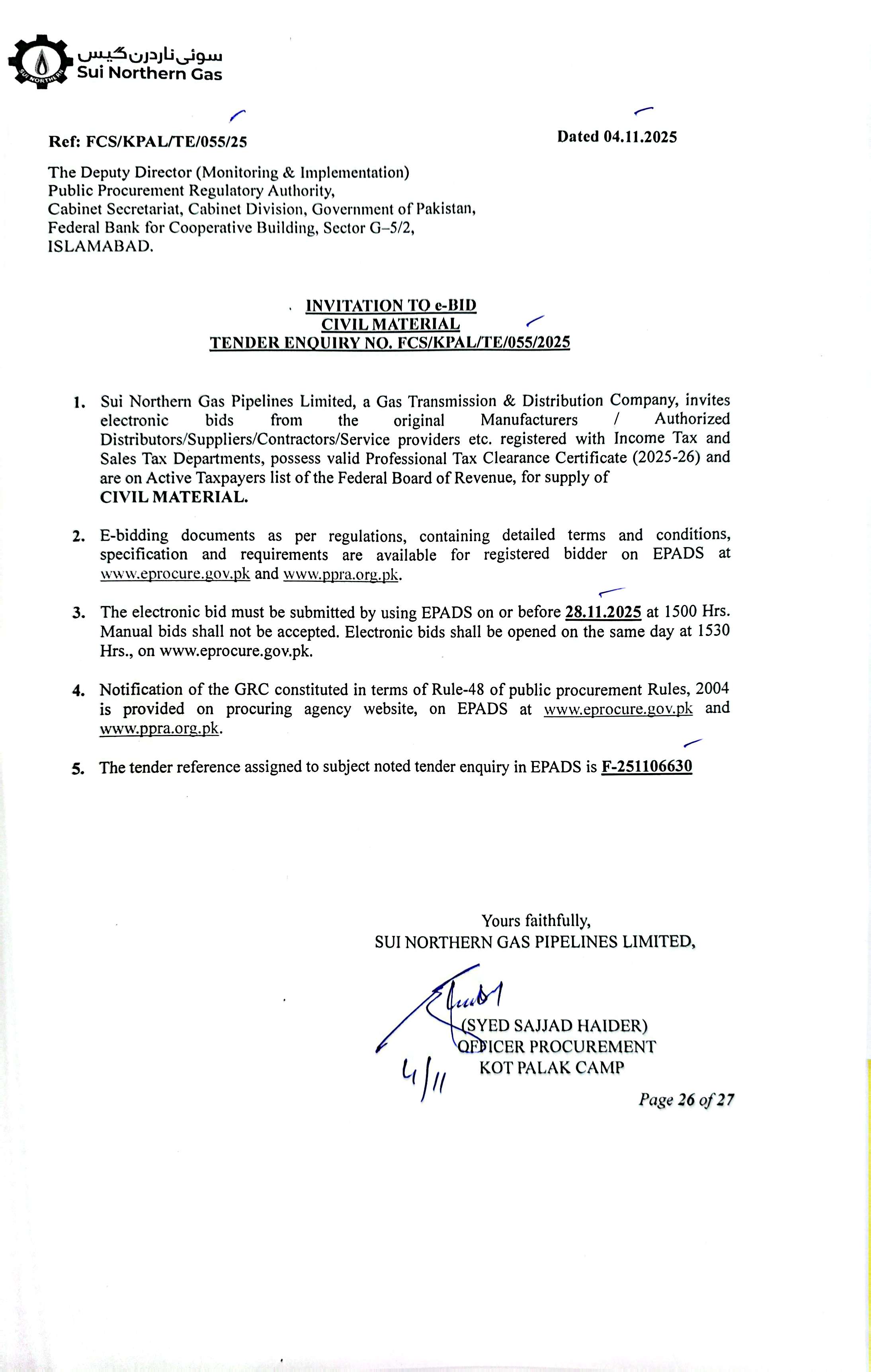 | FCS/KPAL/TE/055/25 | 28, Nov 2025 03:00 PM |