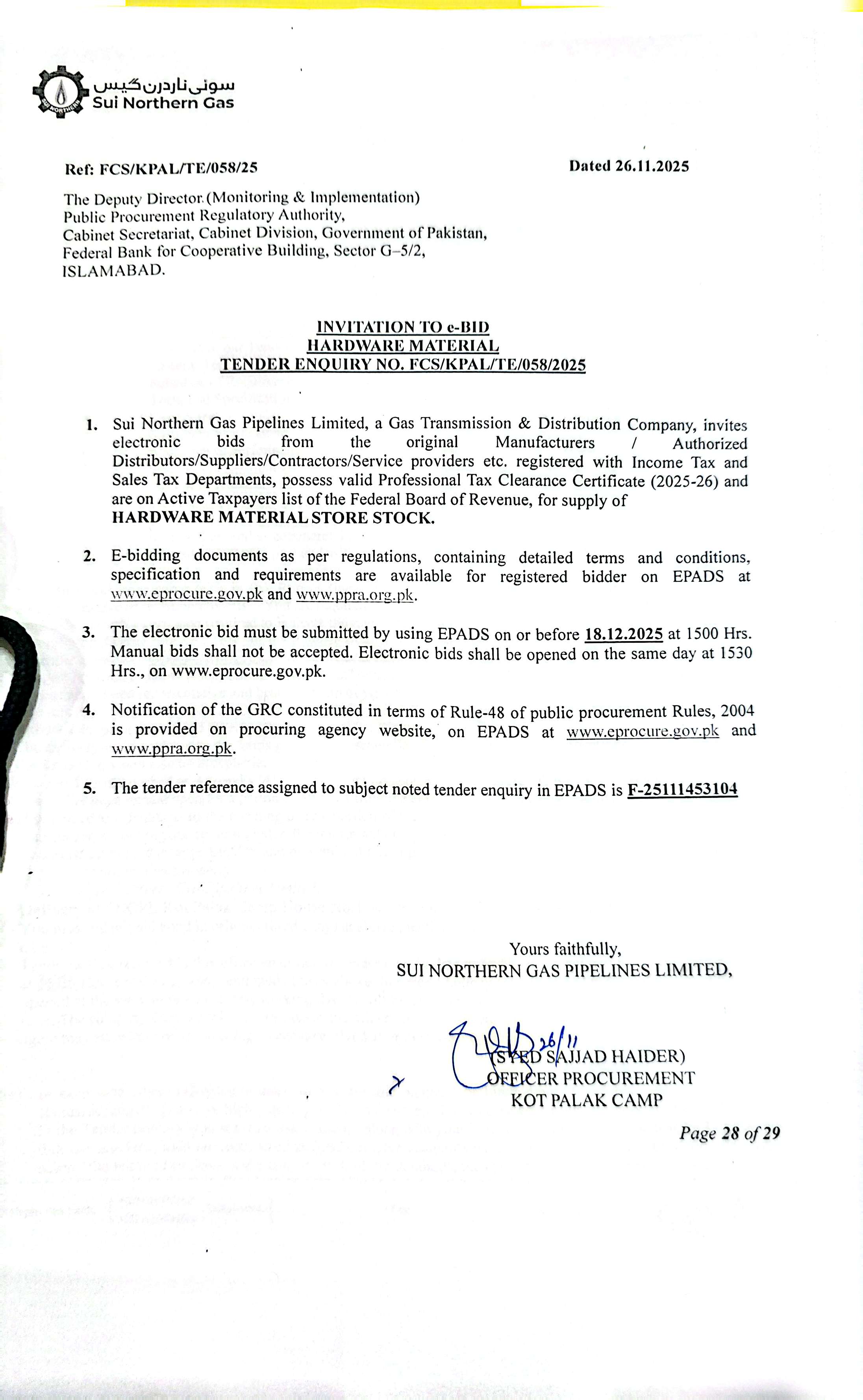 | FCS/KPAL/TE/058/25 | 18, Dec 2025 03:00 PM |