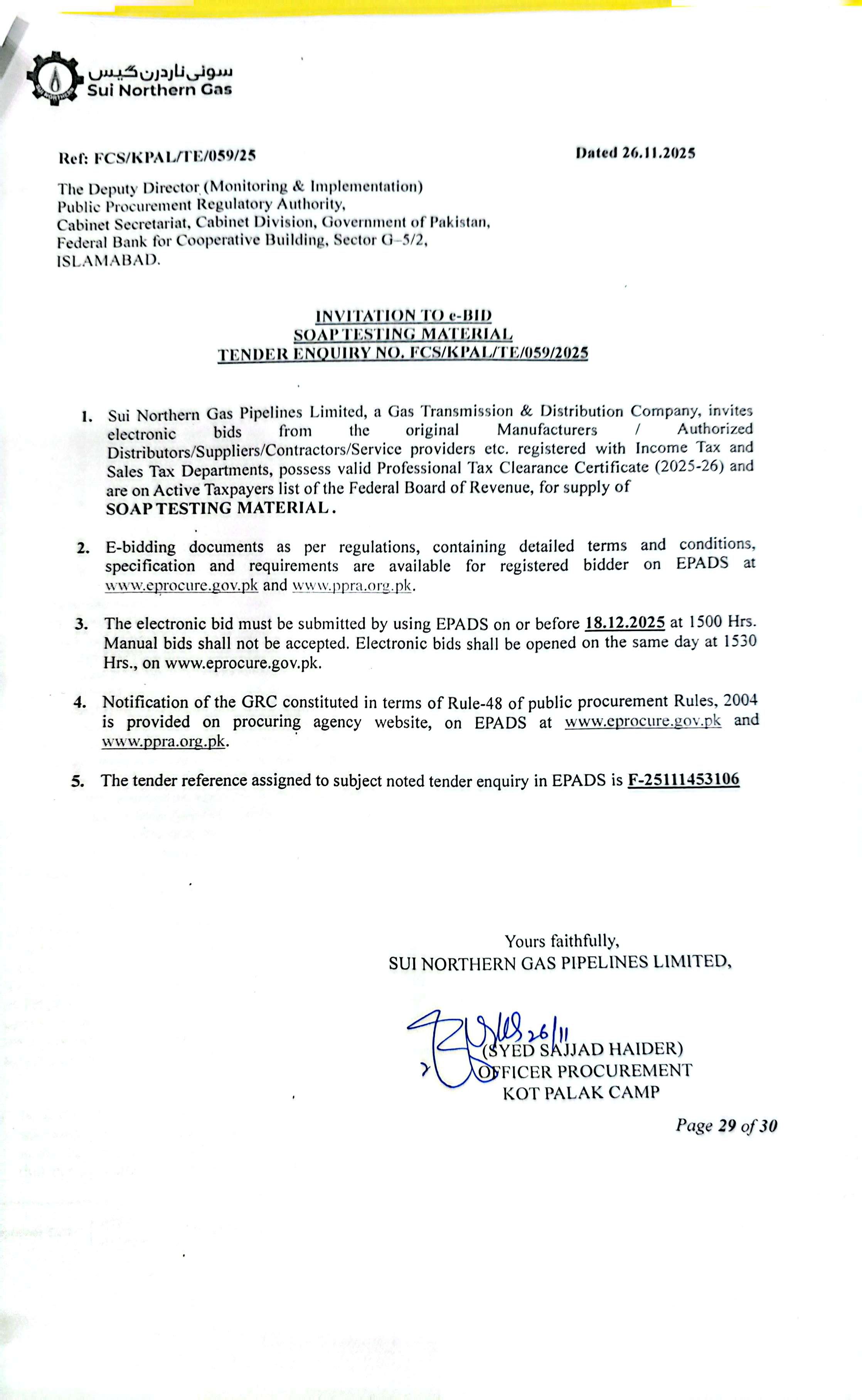 | FCS/KPAL/TE/059/25 | 18, Dec 2025 03:00 PM |