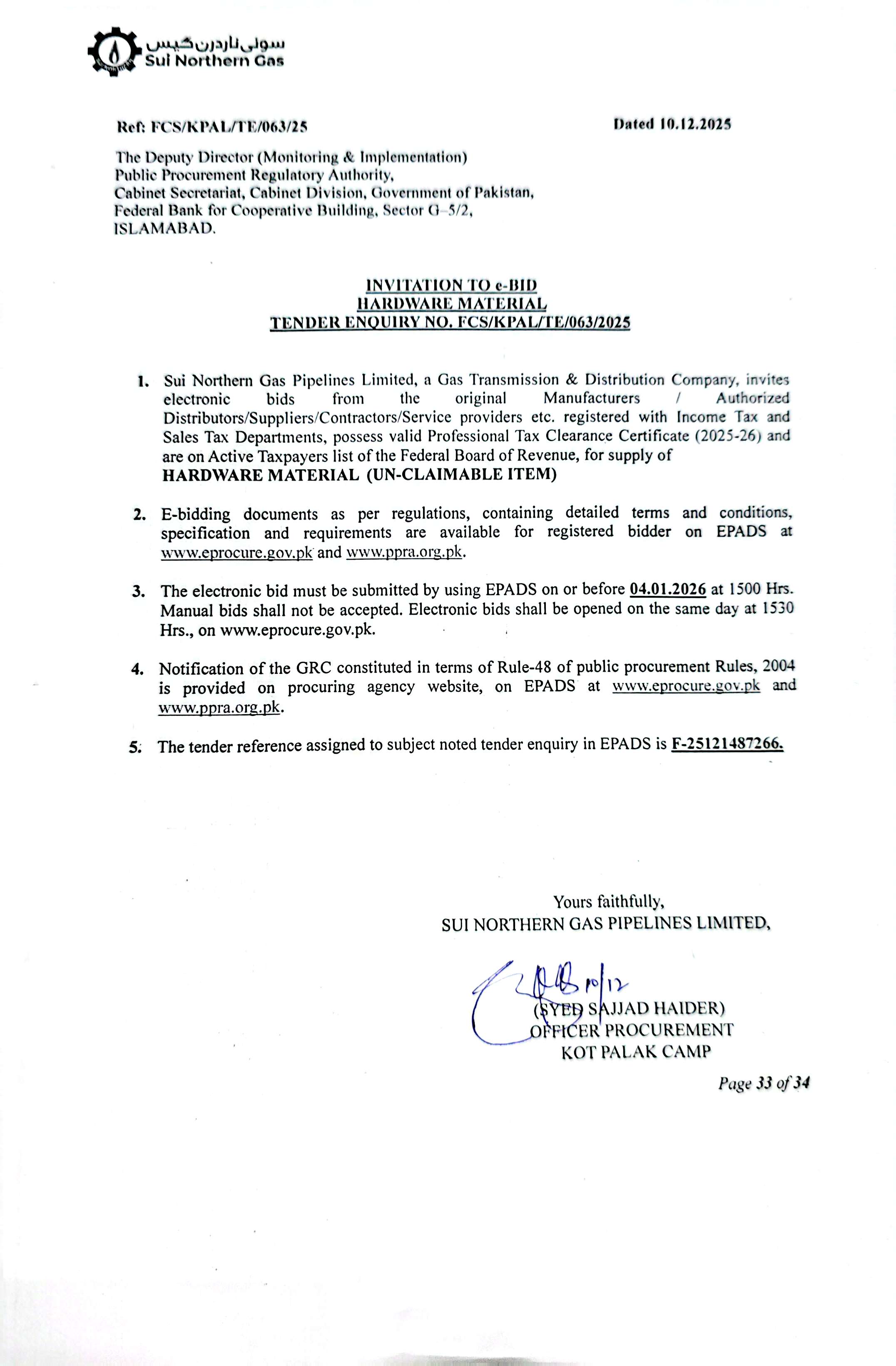 | FCS/KPAL/TE/063/25 | 04, Jan 2026 03:00 PM |