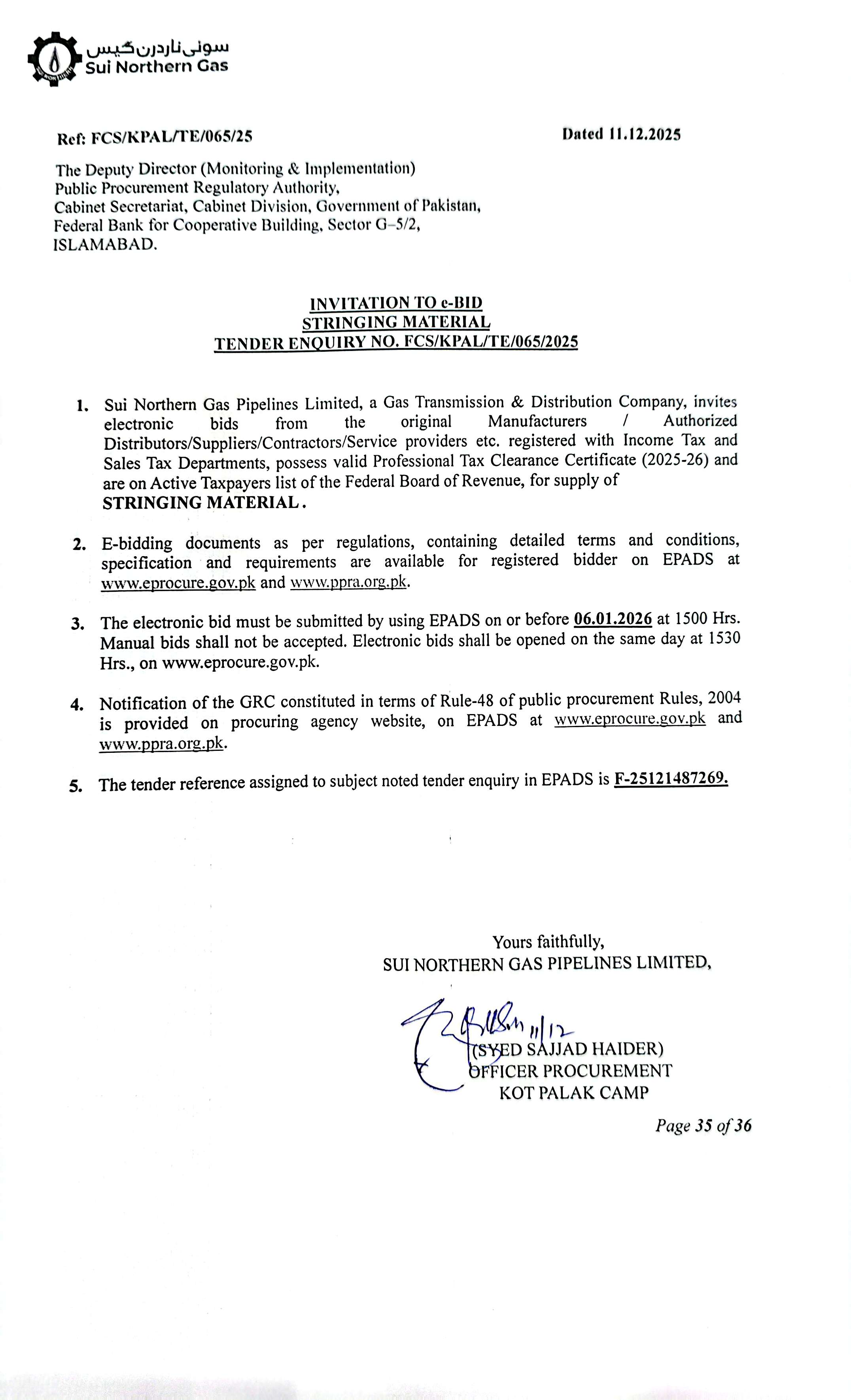 | FCS/KPAL/TE/065/25 | 06, Jan 2026 03:00 PM |