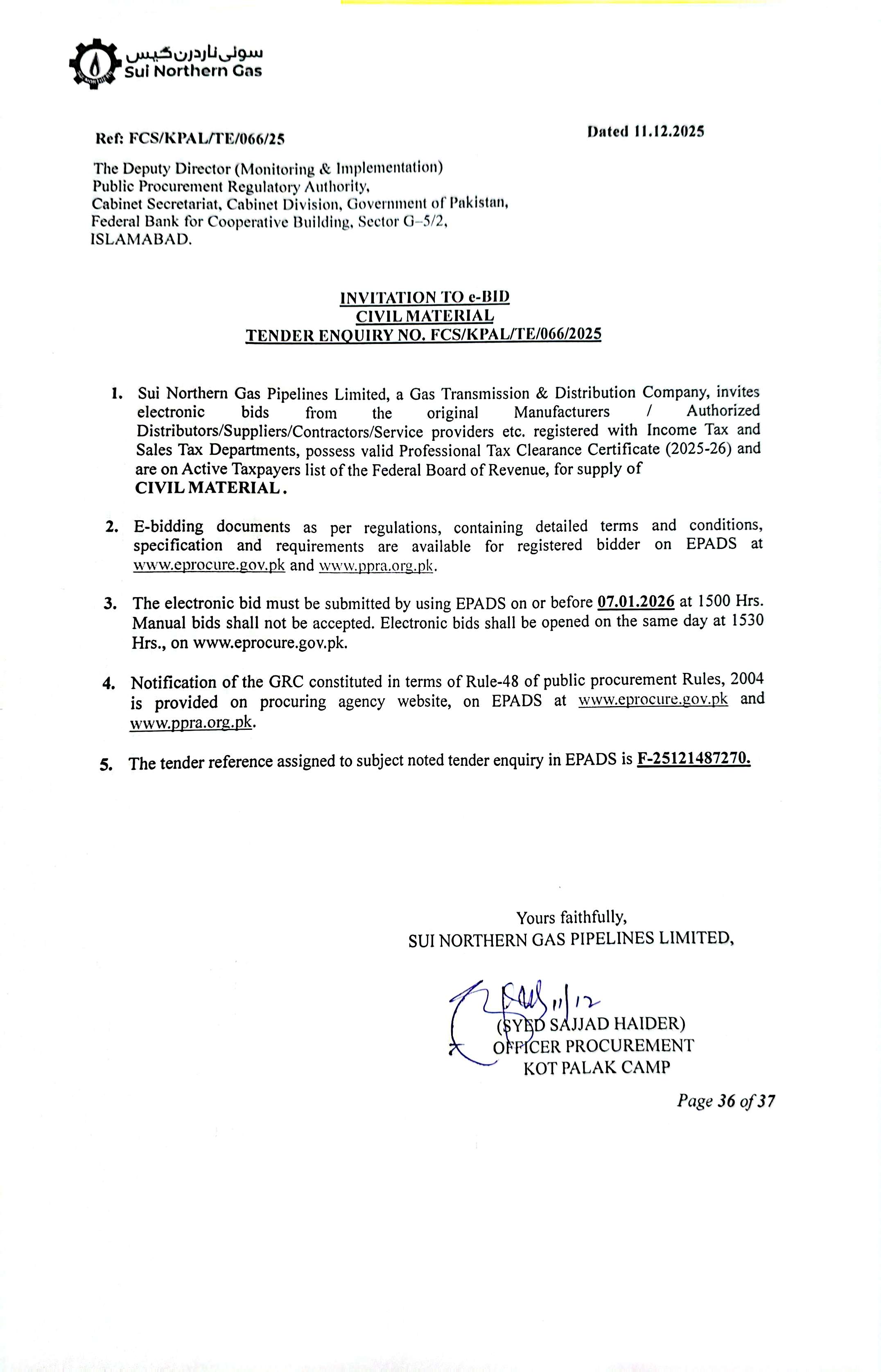 | FCS/KPAL/TE/066/25 | 07, Jan 2026 03:00 PM |