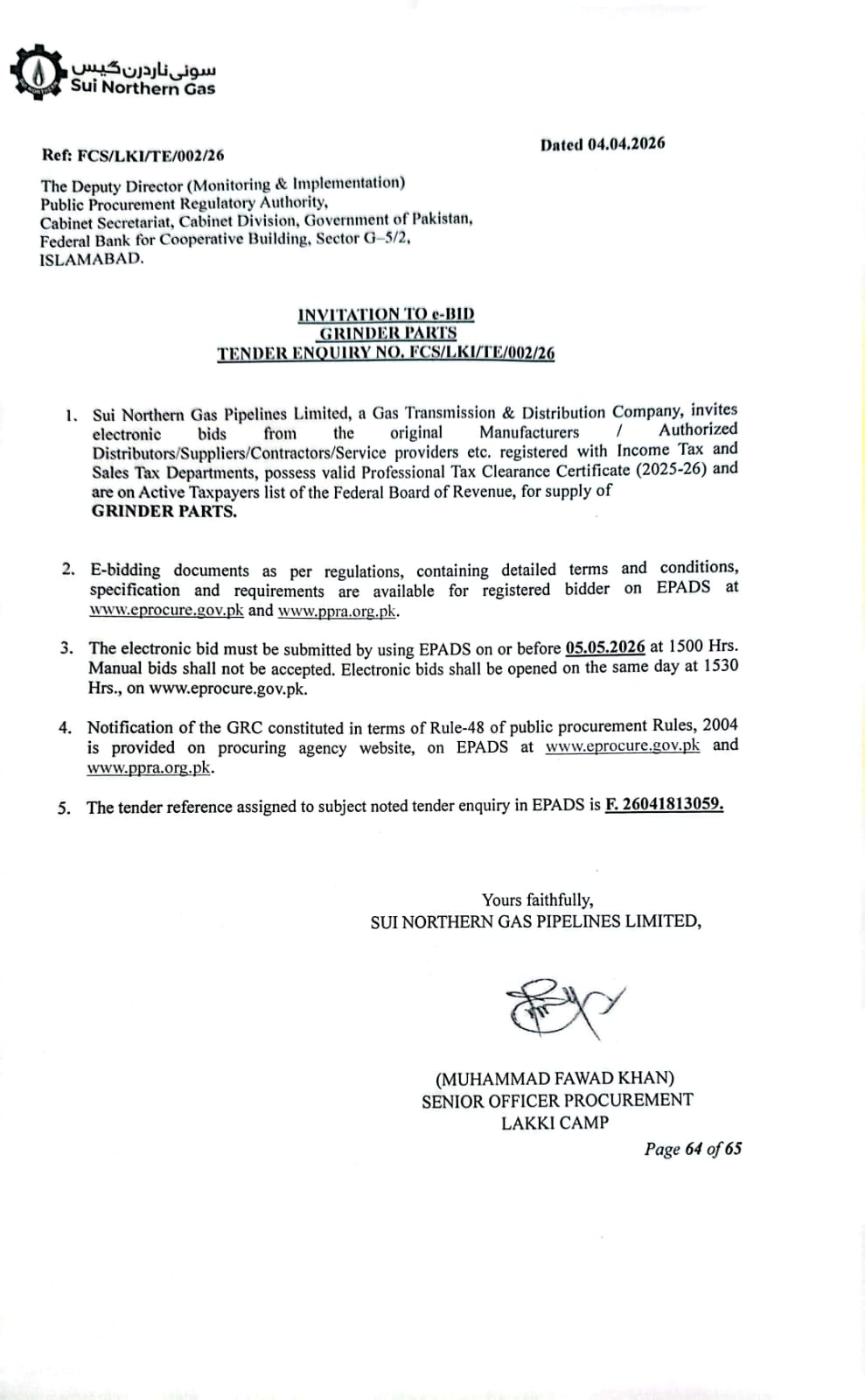 | FCS/LKI/TE/002/26 | 05, May 2026 03:00 PM |