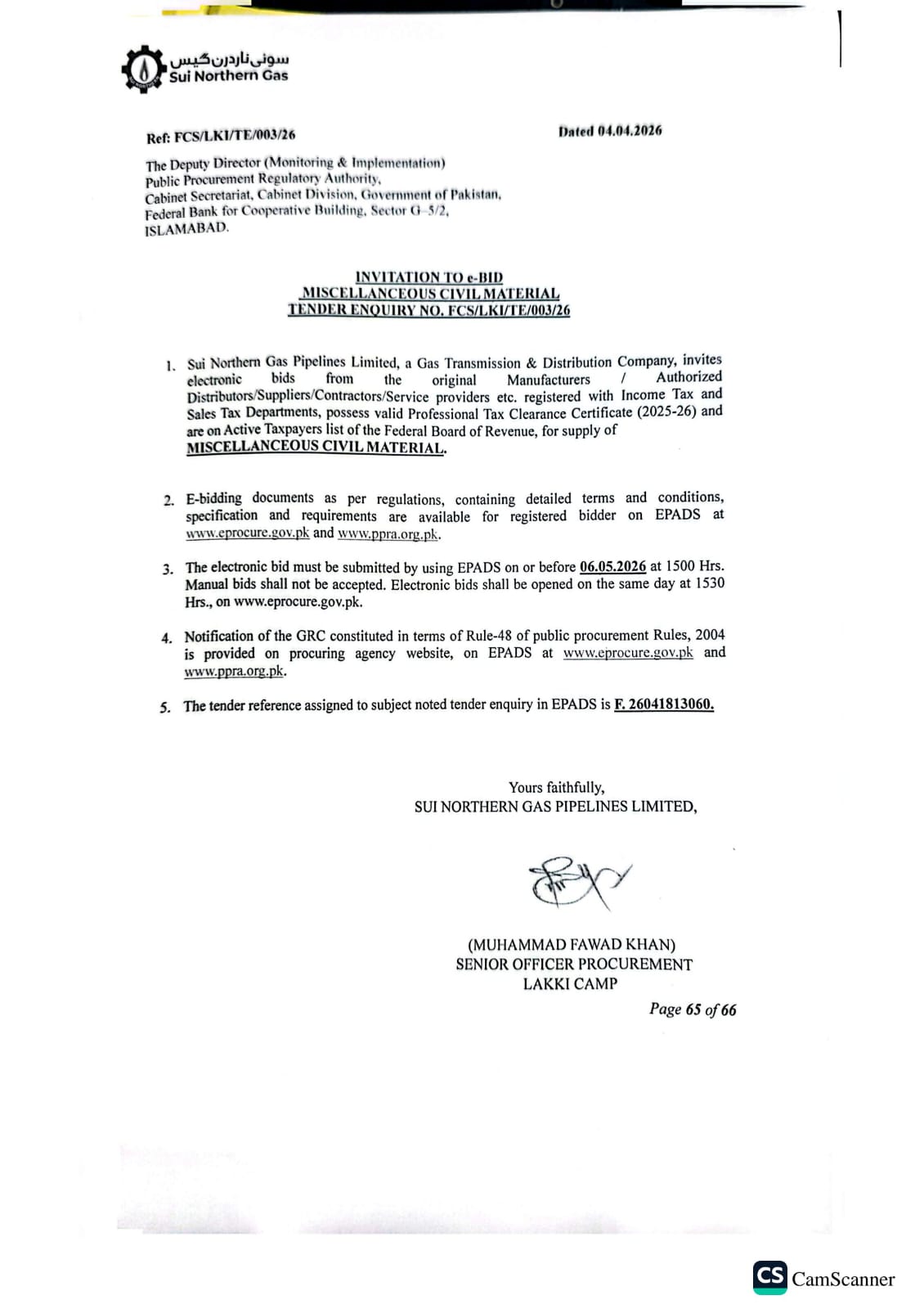 | FCS/LKI/TE/003/26 | 06, May 2026 03:00 PM |