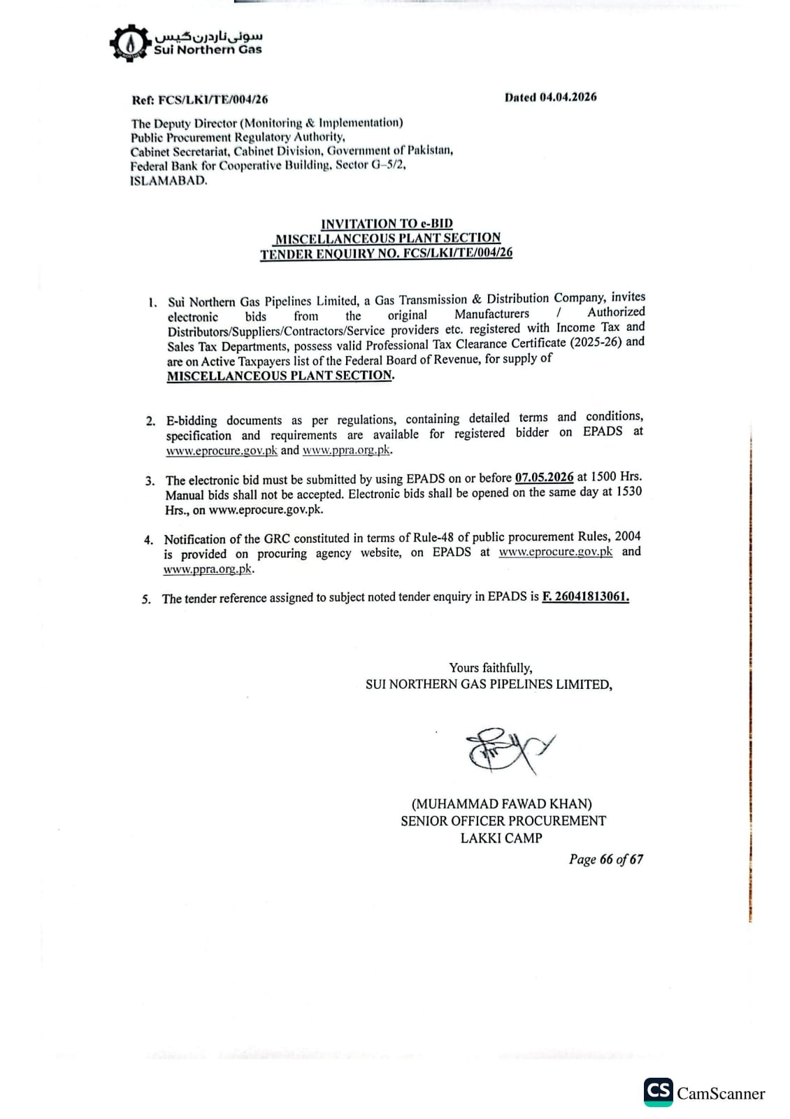 | FCS/LKI/TE/004/26 | 07, May 2026 03:00 PM |