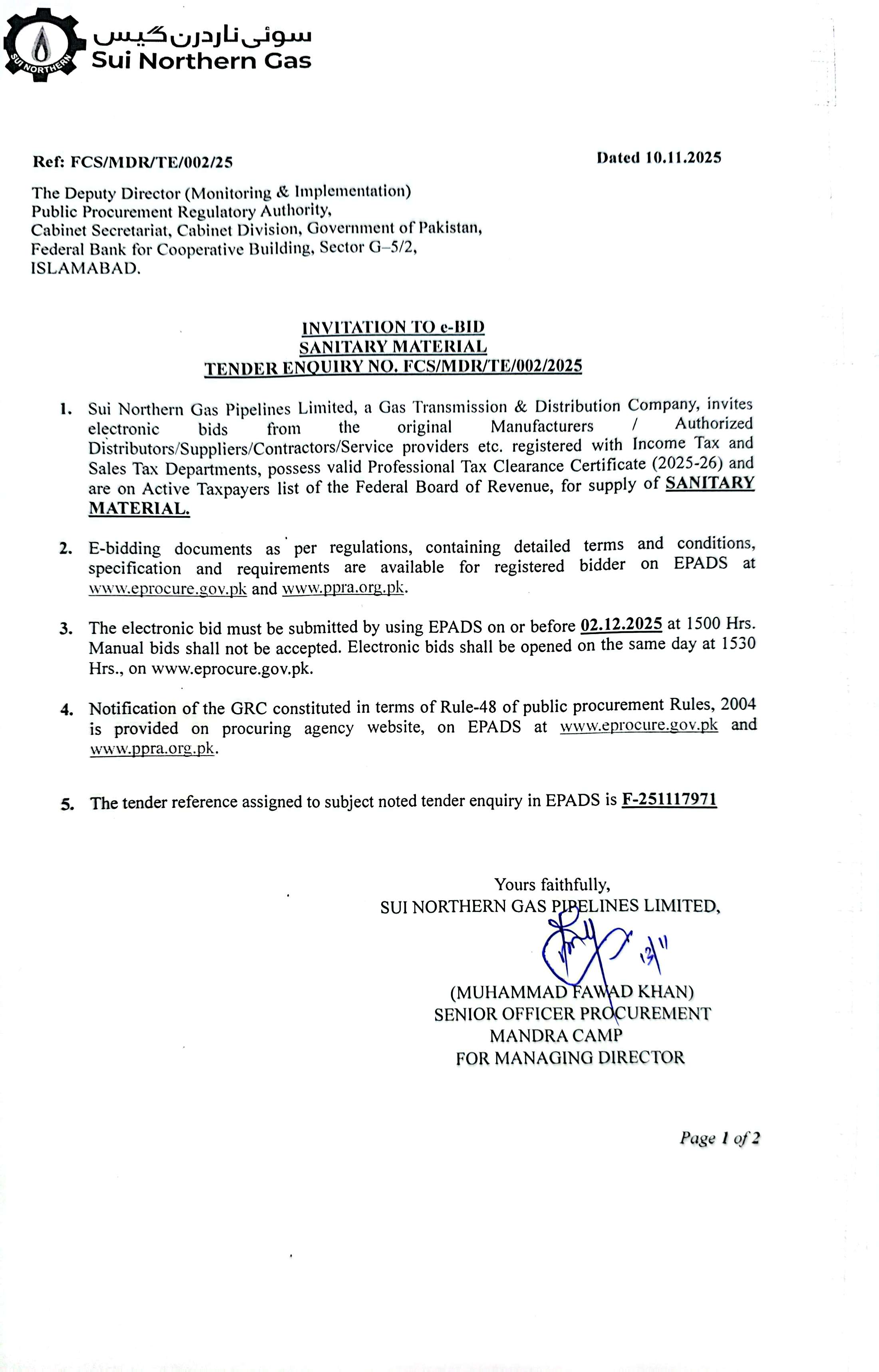| FCS/MDR/TE/002/25 | 02, Dec 2025 03:00 PM |