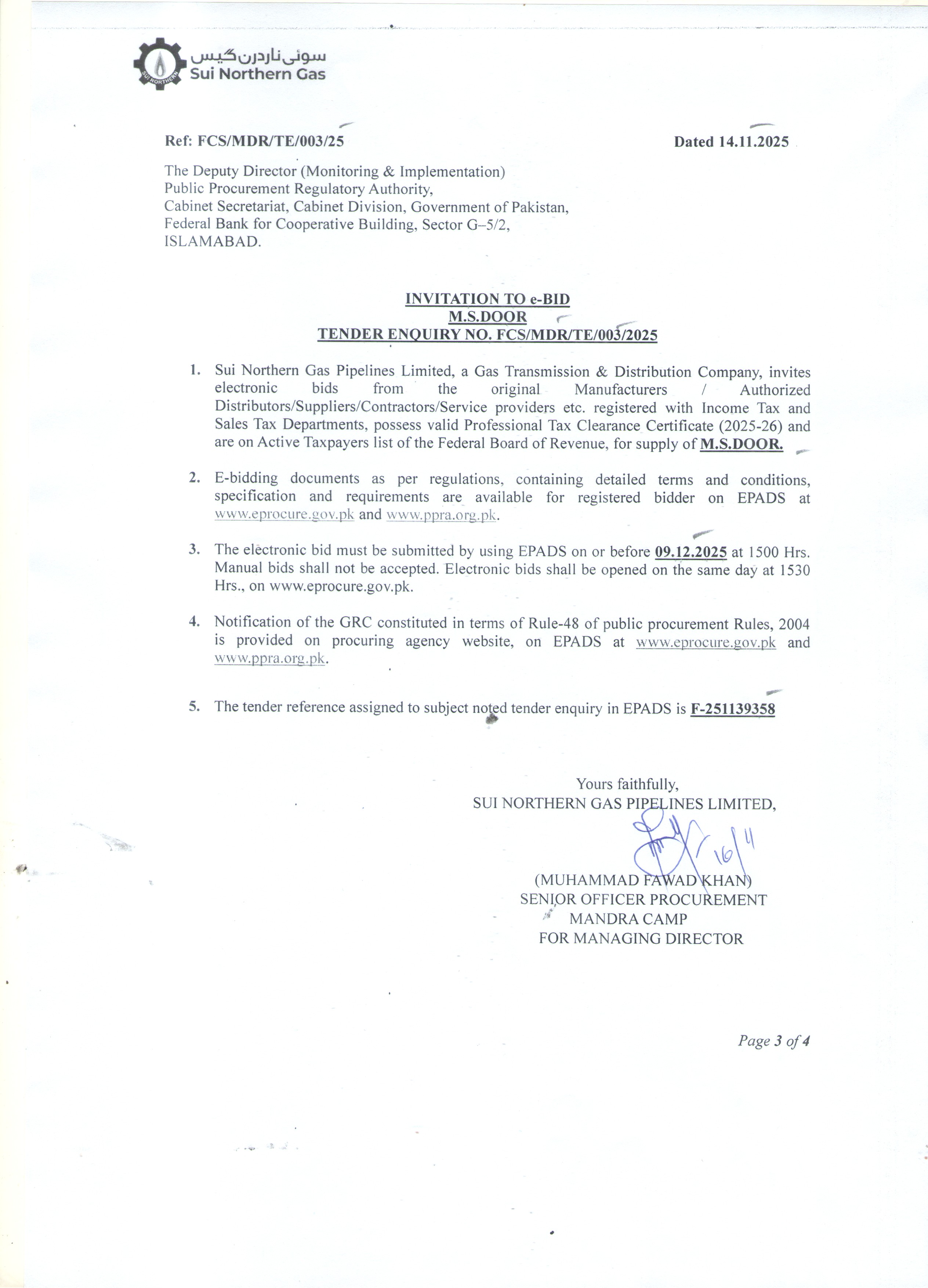 | FCS/MDR/TE/003/25 | 09, Dec 2025 03:00 PM |