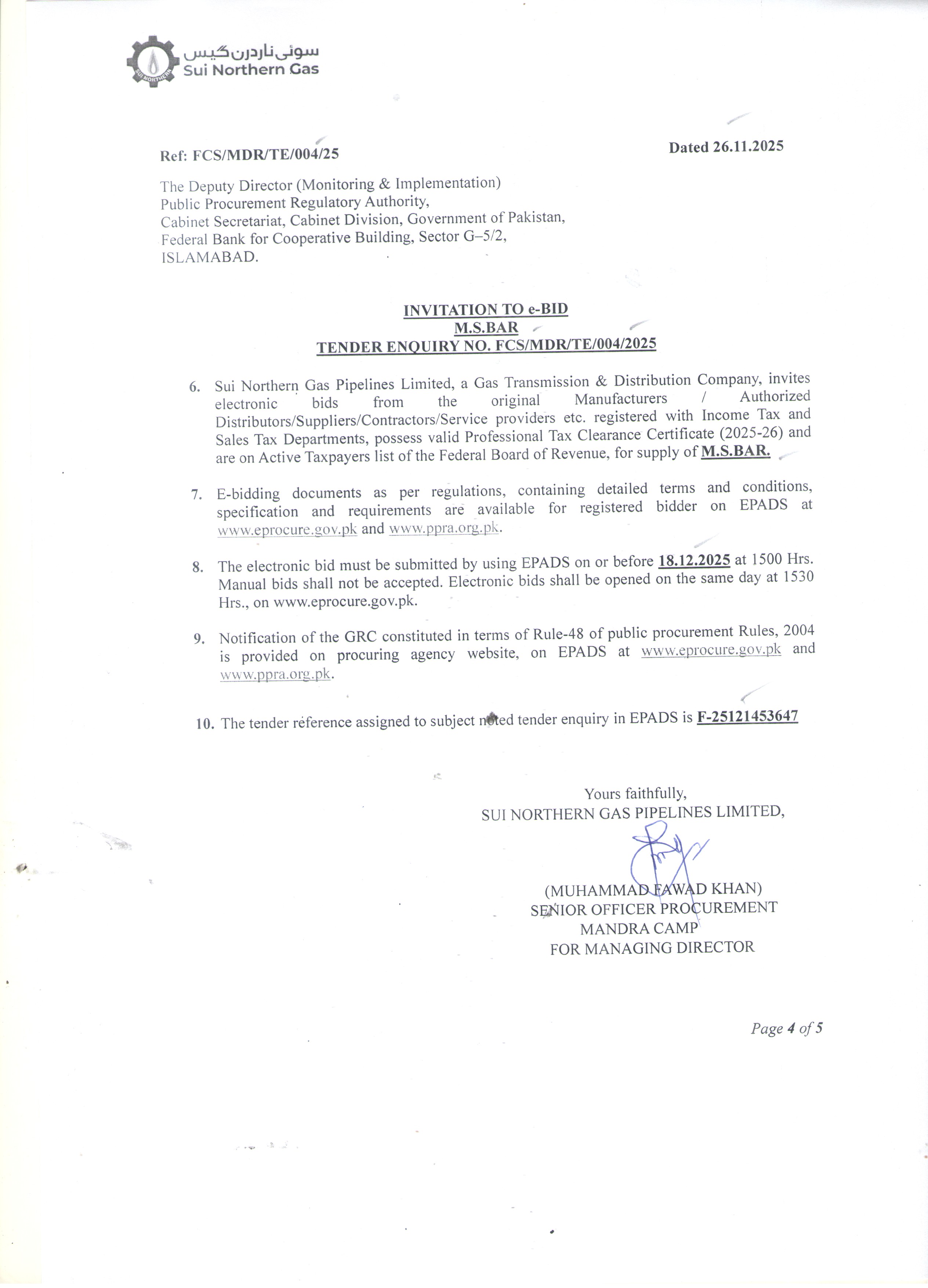 | FCS/MDR/TE/004/25 | 18, Dec 2025 03:00 PM |