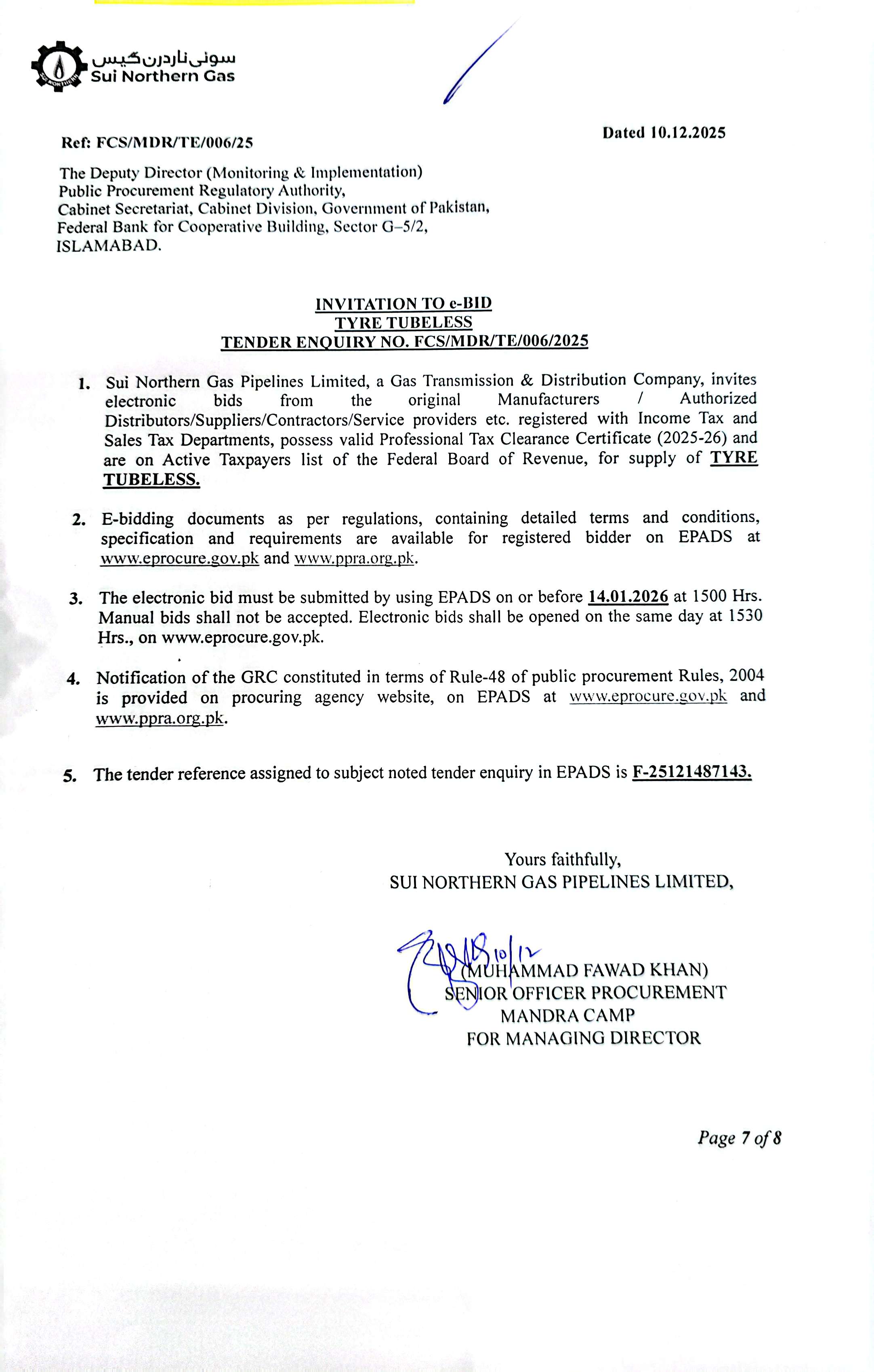 | FCS/MDR/TE/006/25 | 14, Jan 2026 03:00 PM |