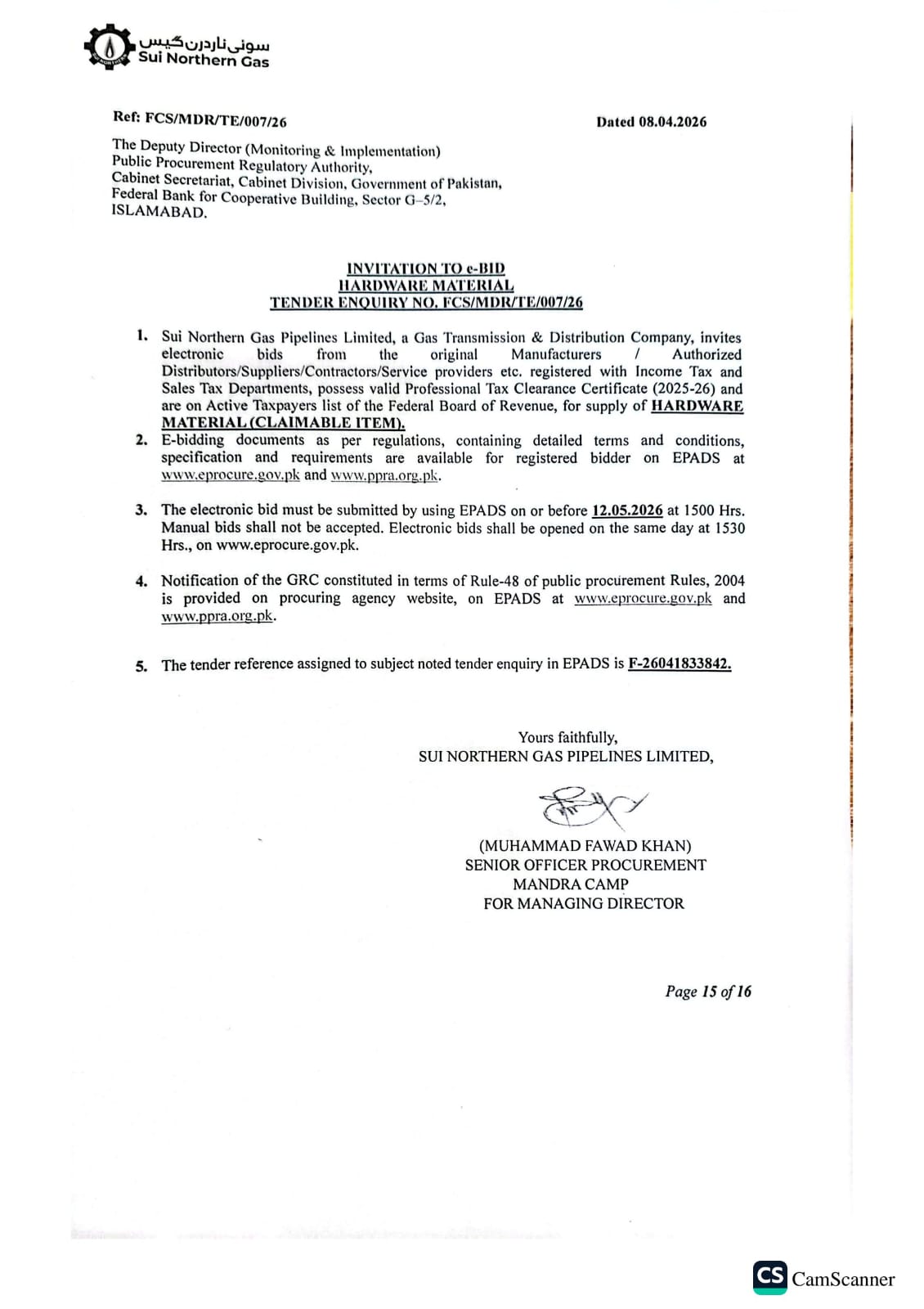 | FCS/MDR/TE/007/26 | 12, May 2026 03:00 PM |