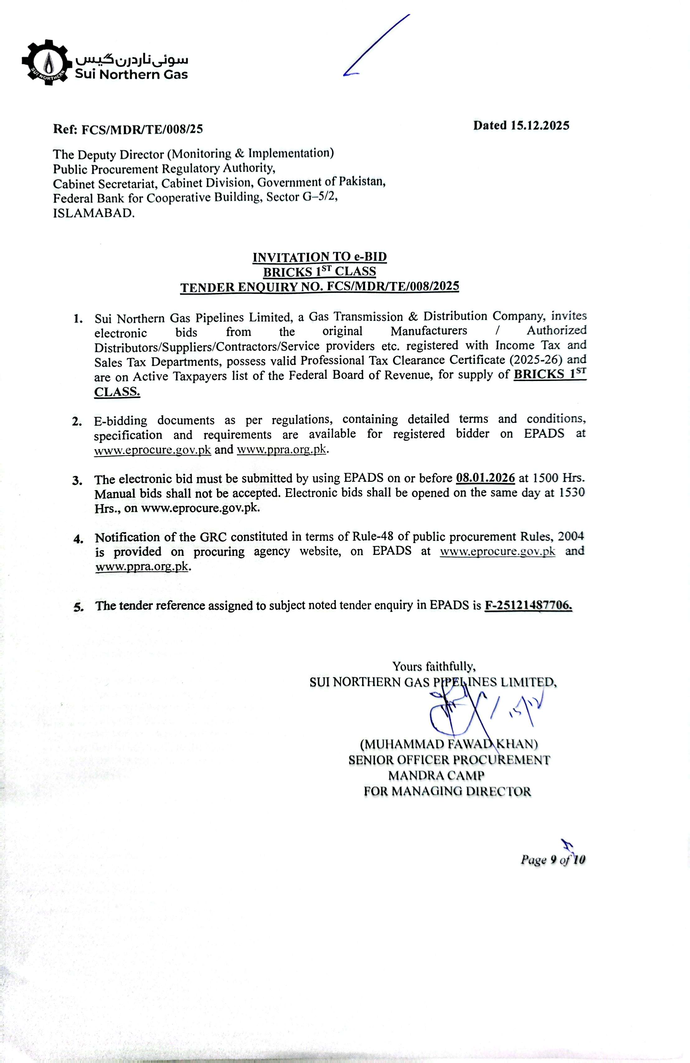 | FCS/MDR/TE/008/25 | 08, Jan 2026 03:00 PM |
