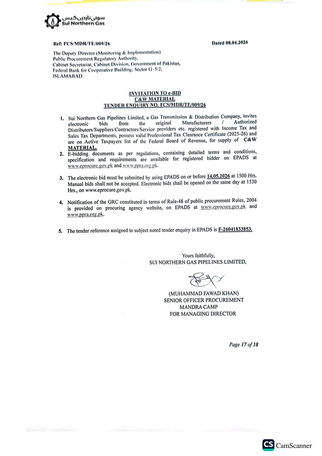 | FCS/MDR/TE/009/26 | 14, May 2026 03:00 PM |