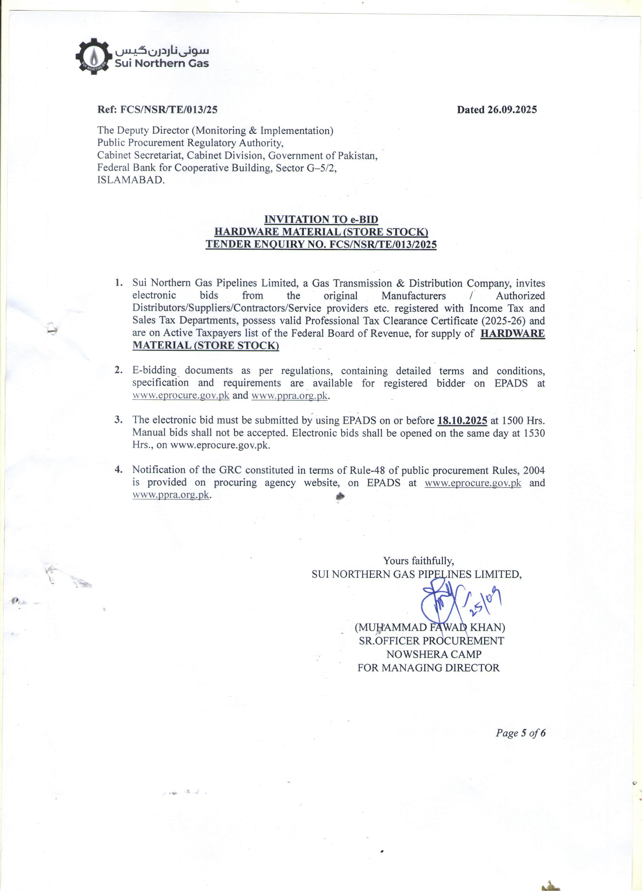 FCS/NSR/TE/013/25 | 18, Oct 2025 03:00 PM |