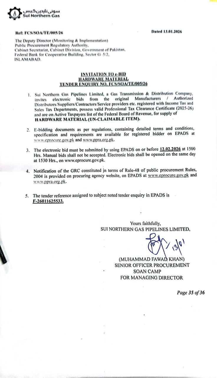 | FCS/SOA/TE/005/26 | 12, Feb 2026 03:00 PM |