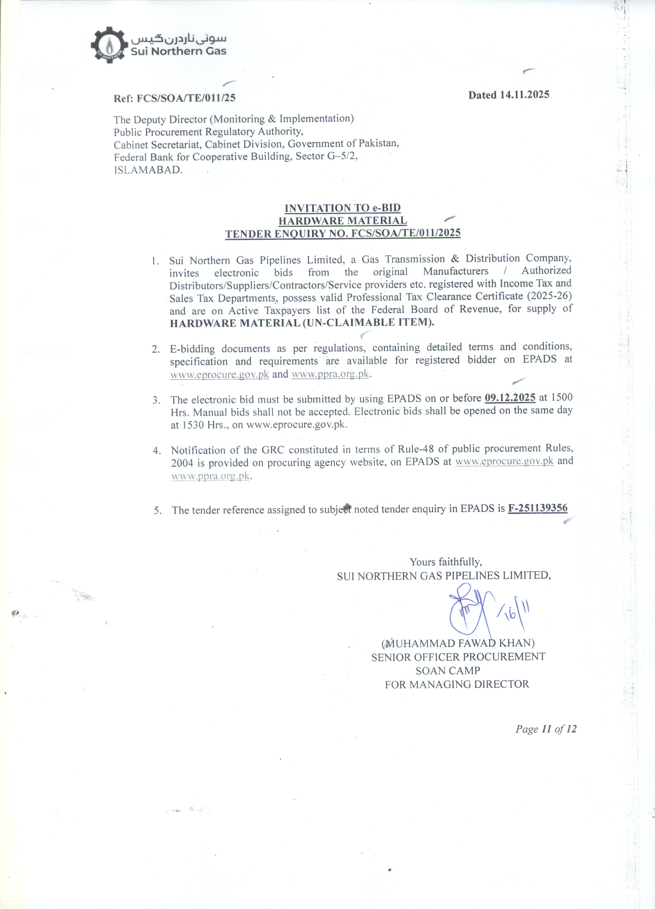 | FCS/SOA/TE/011/25 | 09, Dec 2025 03:00 PM |