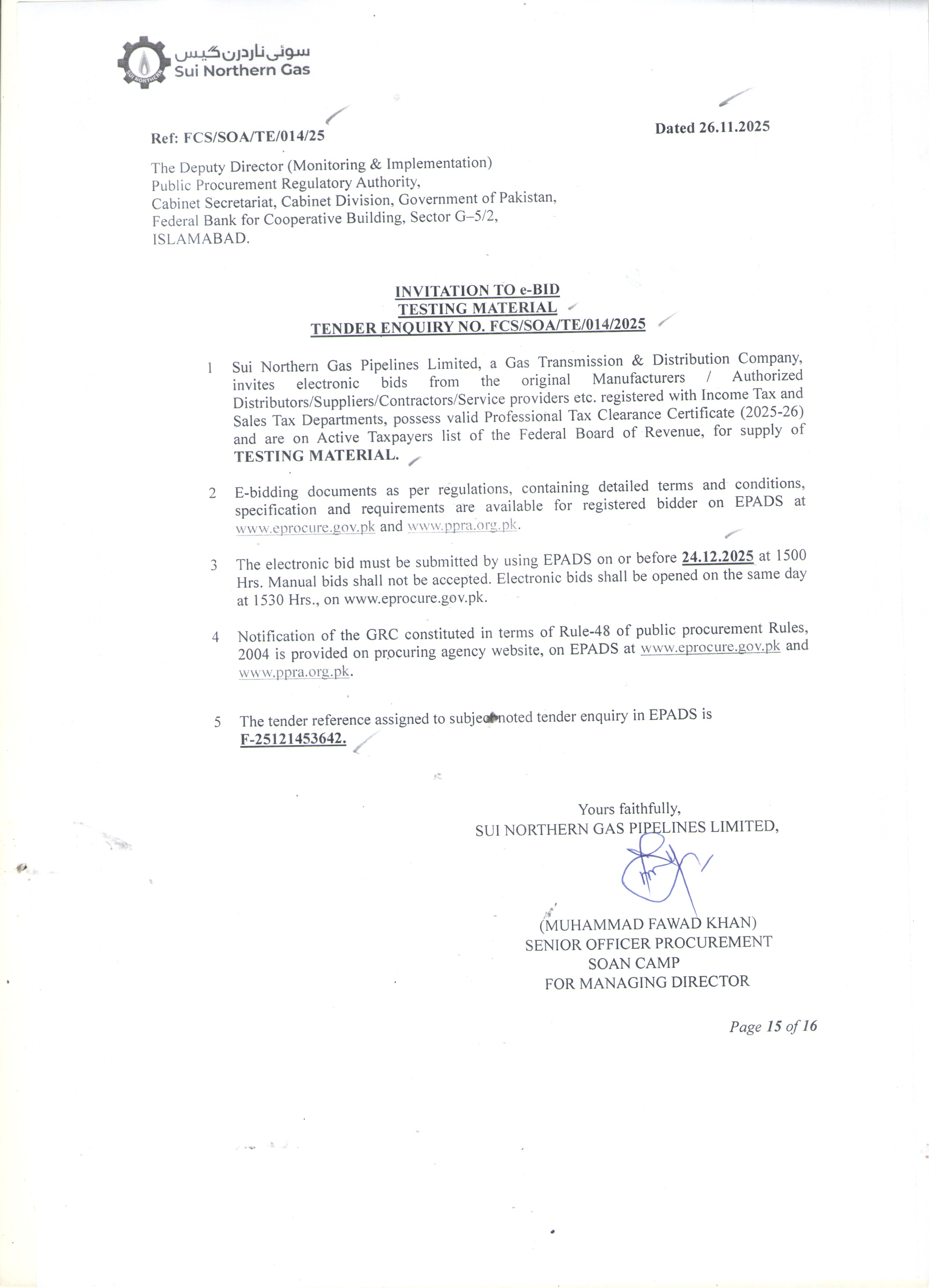 | FCS/SOA/TE/014/25 | 24, Dec 2025 03:00 PM |