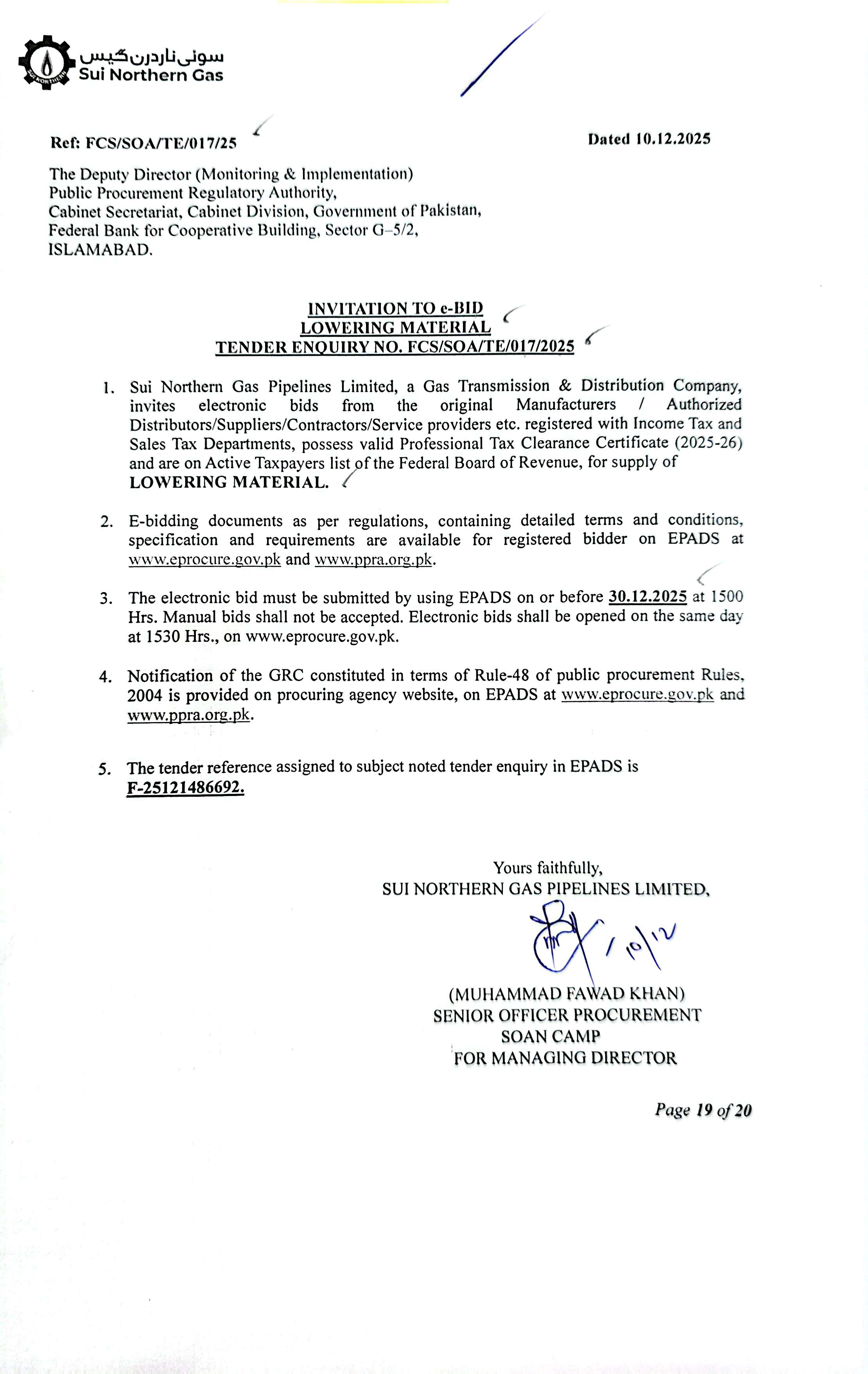 | FCS/SOA/TE/017/25 | 30, Dec 2025 03:00 PM |