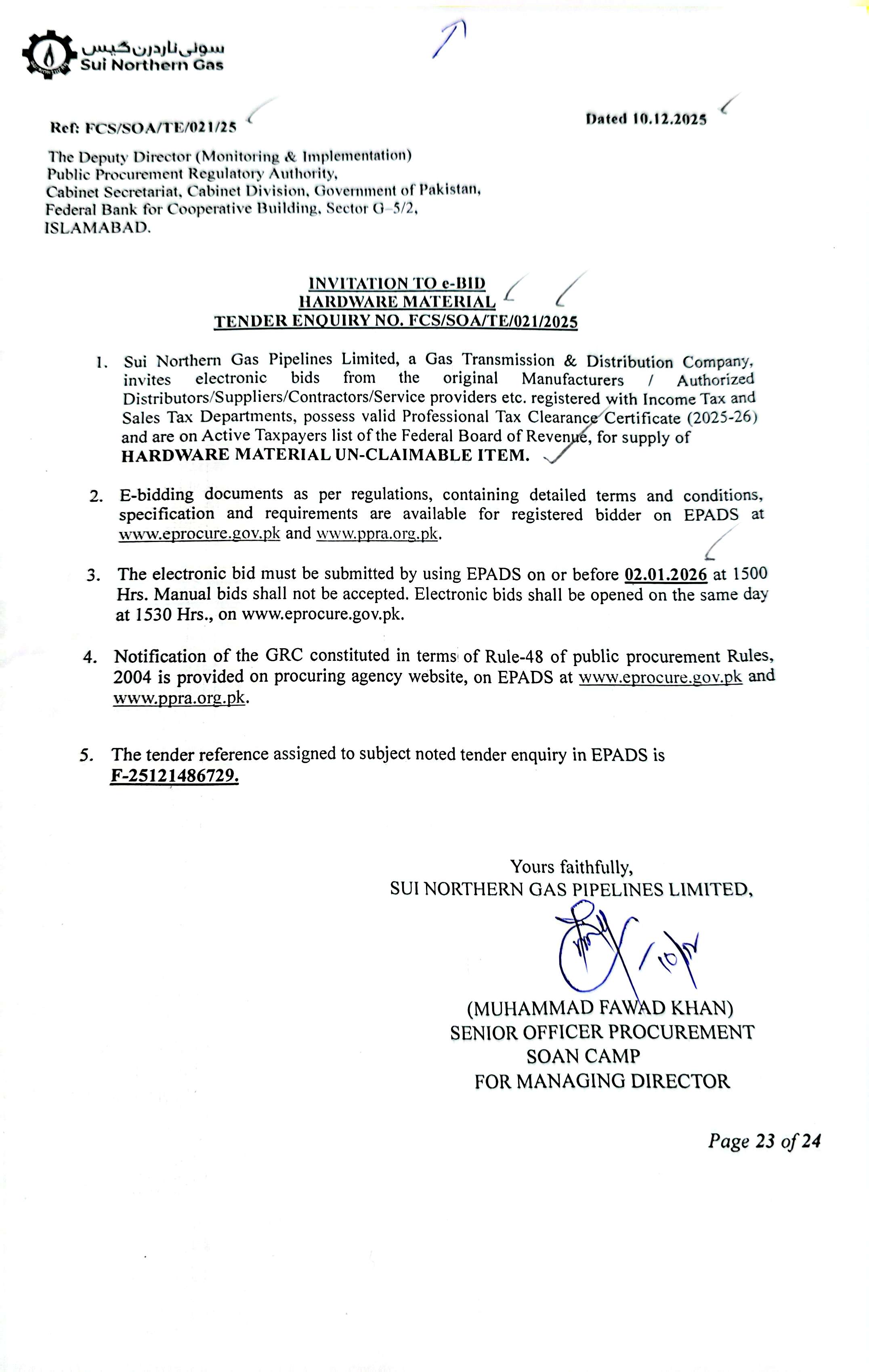 | FCS/SOA/TE/021/25 | 01, Jan 2026 03:00 PM |