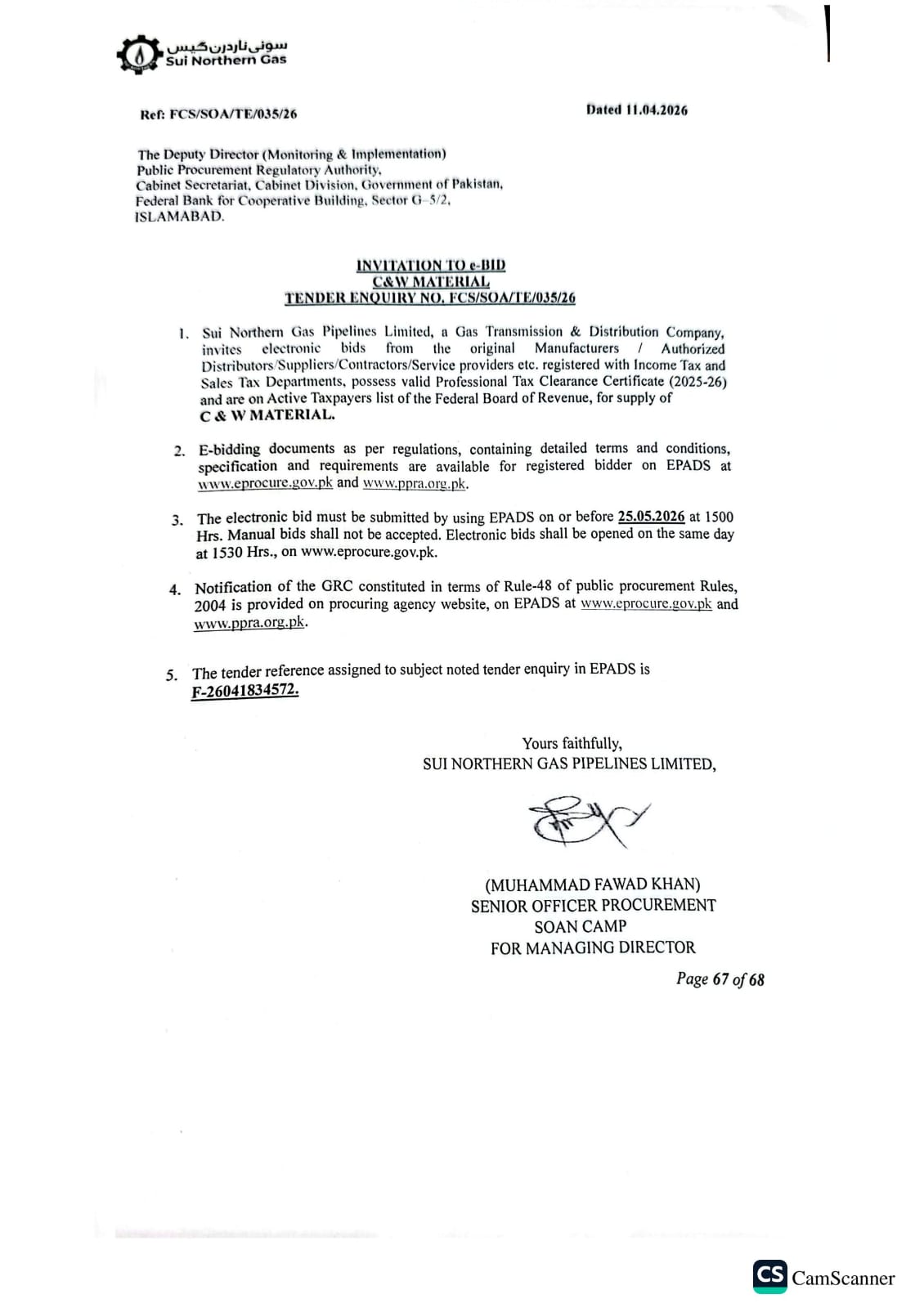 | FCS/SOA/TE/035/26 | 25, May 2026 03:00 PM |