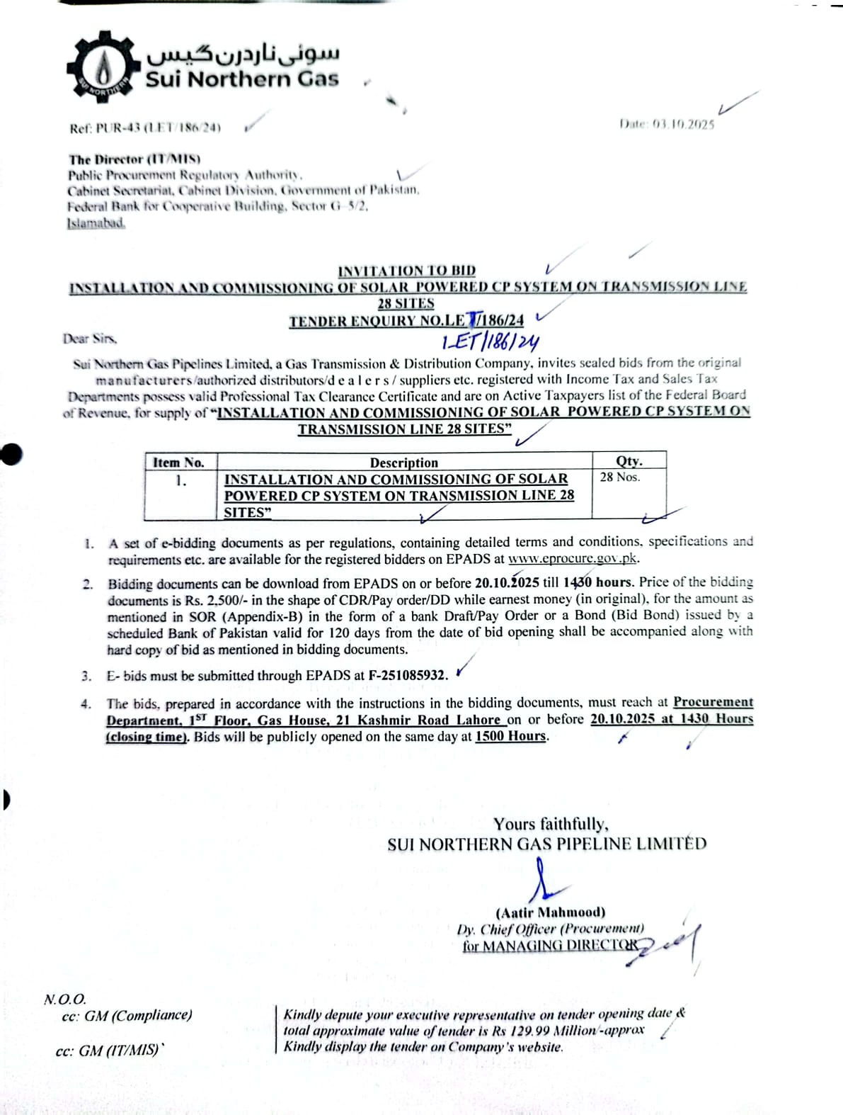 INSTALLATION & COMMISSIONING OF SOLAR POWERED CP SYSTEM ON TRANSMISSION PIPELINE | 28 Nos. |