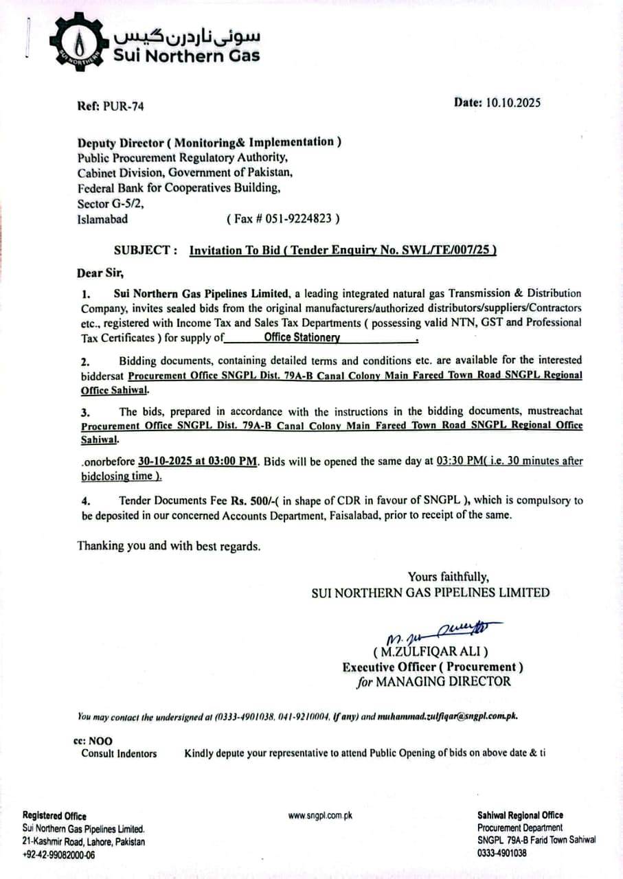 SWL/TE/007/2025 | 30, Oct 2025 03:00 PM |