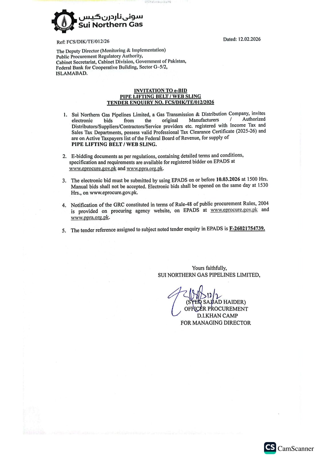 | FCS/DIK/TE/012/26 | 10, Mar 2026 03:00 PM |