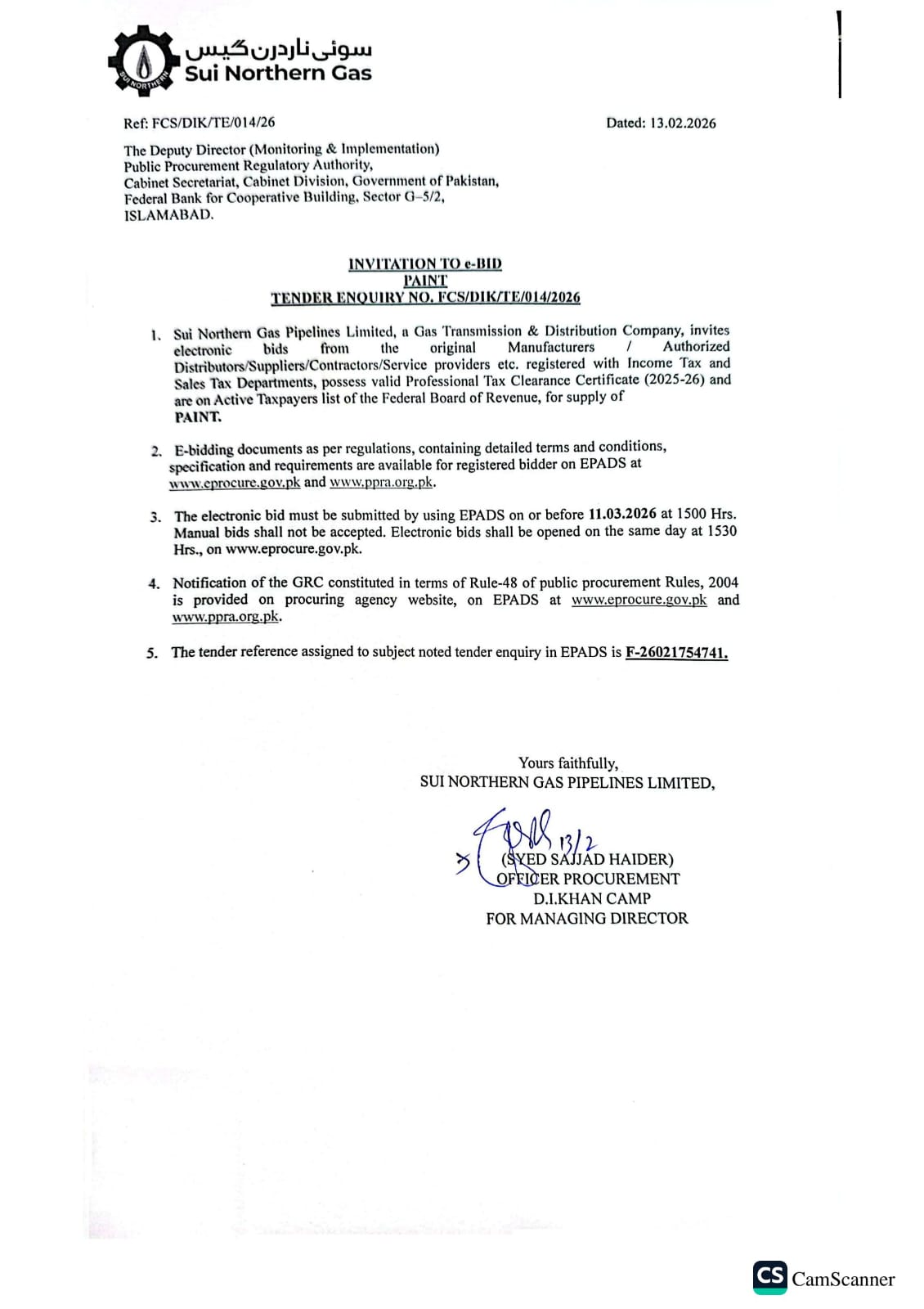 | FCS/DIK/TE/014/26 | 11, Mar 2026 03:00 PM |