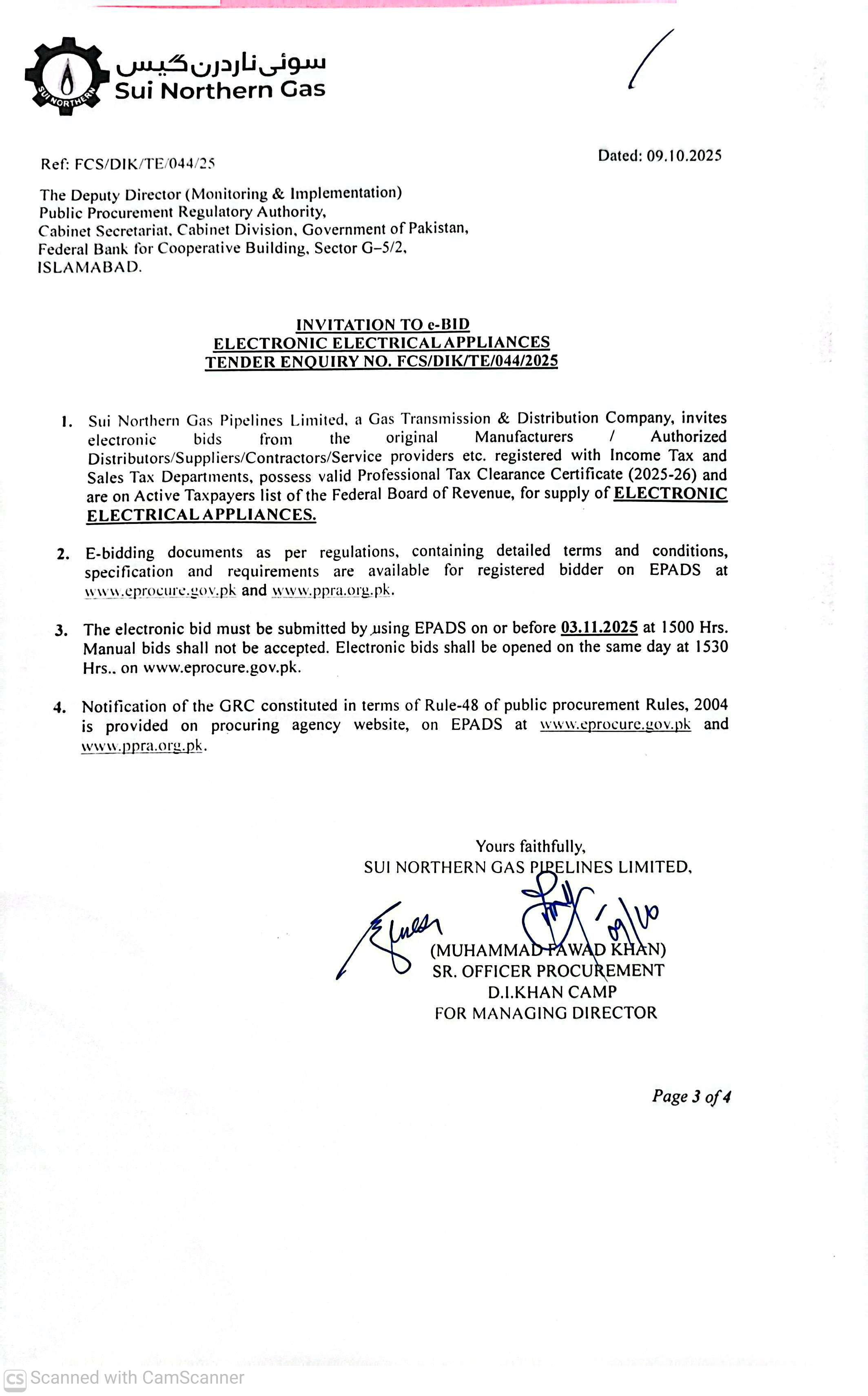 | FCS/DIK/TE/044/25 | 03, Nov 2025 03:00 PM |