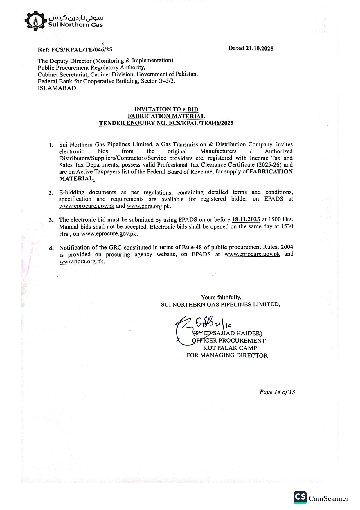 | FCS/KPAL/TE/046/25 | 18, Nov 2025 03:00 PM |