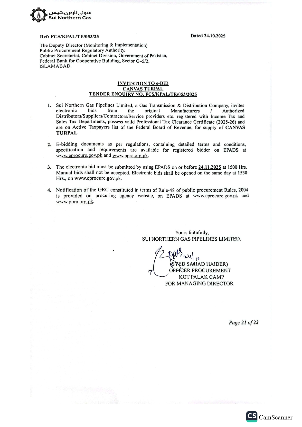 | FCS/KPAL/TE/053/25 | 22, Nov 2025 02:30 PM |