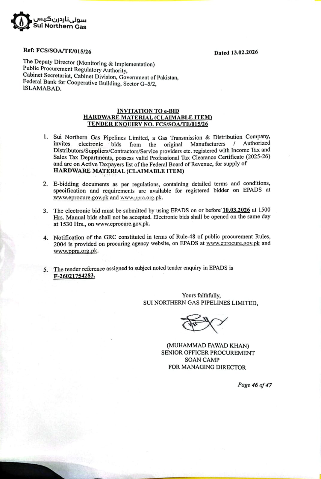 | FCS/SOA/TE/015/26 | 10, Mar 2026 03:00 PM |