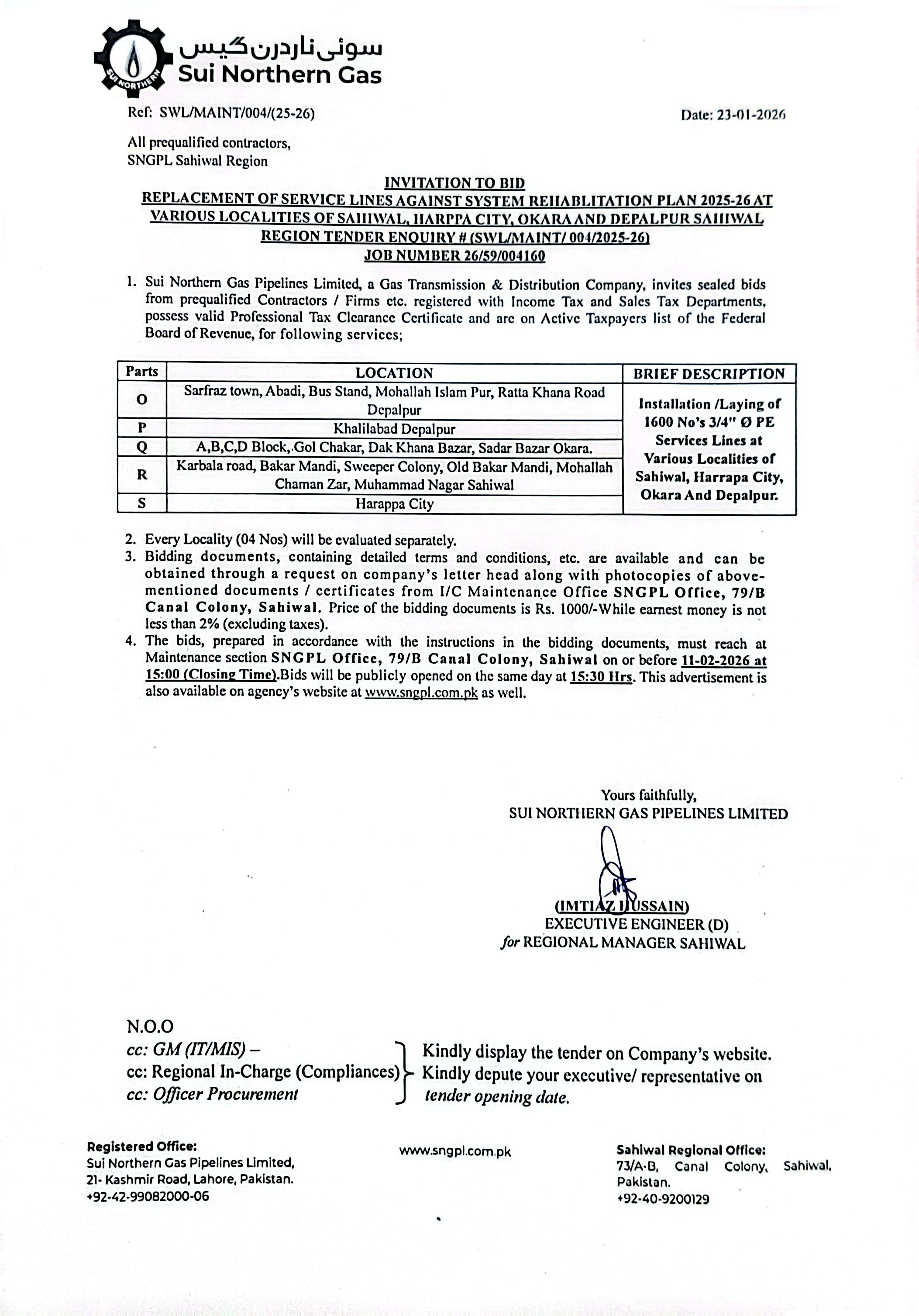 | SWL/MAINT/004/(25-26) | 11, Feb 2026 03:00 PM |